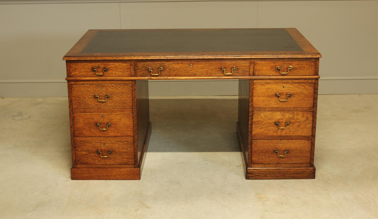 Large Early 20th Century Oak Twin Pedestal Desk (1 of 10)