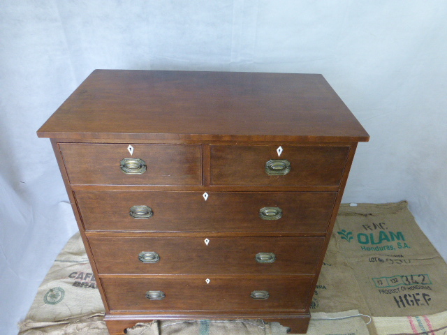 Large Early Victorian Chest of Drawers with Bone Escutcheons on Bracket Feet