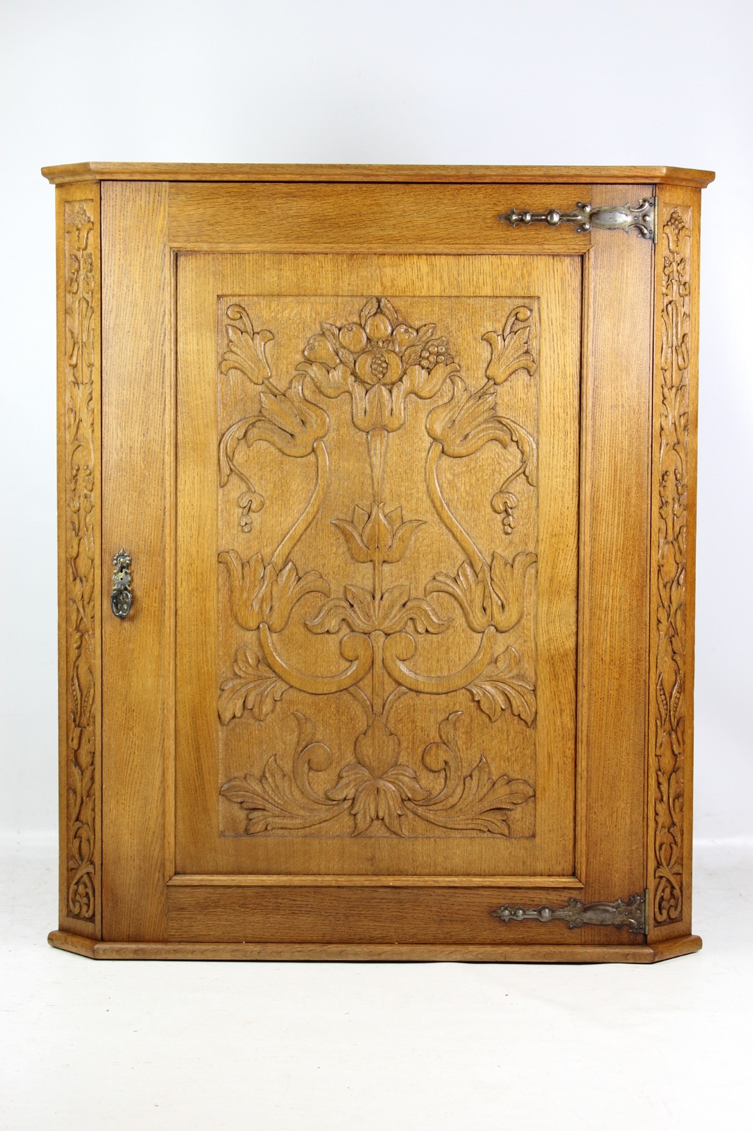 Large Edwardian Arts & Crafts Oak Corner Cupboard (1 of 13)