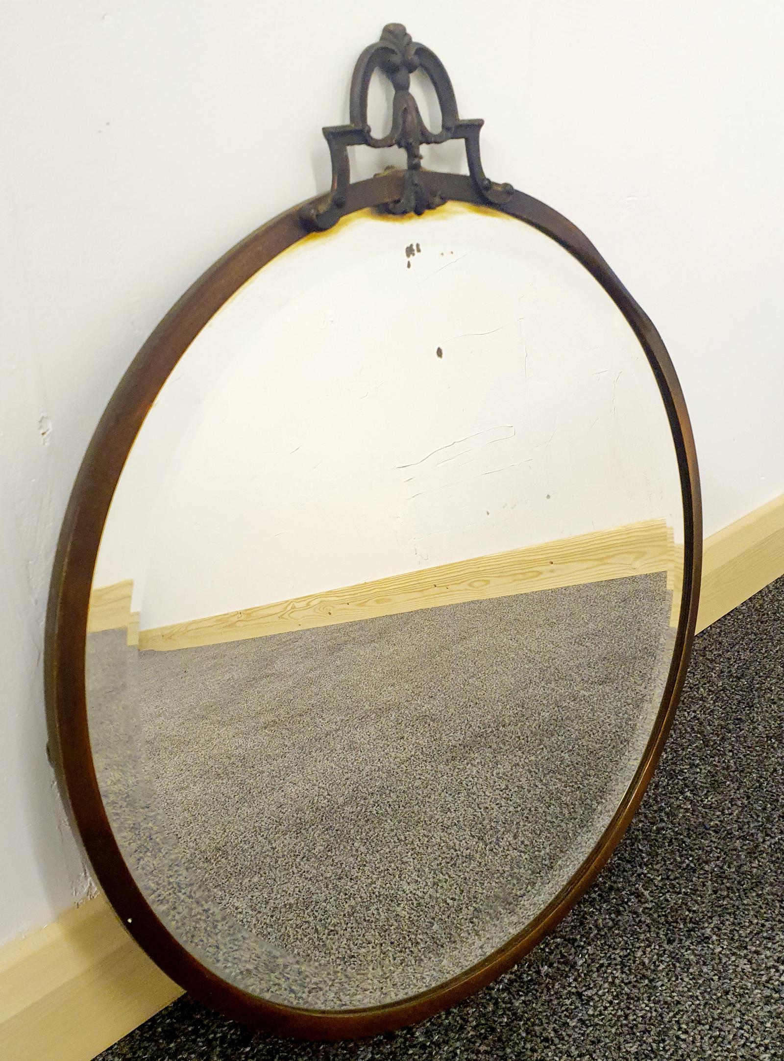 Large Edwardian Brass Frame Circular Mirror