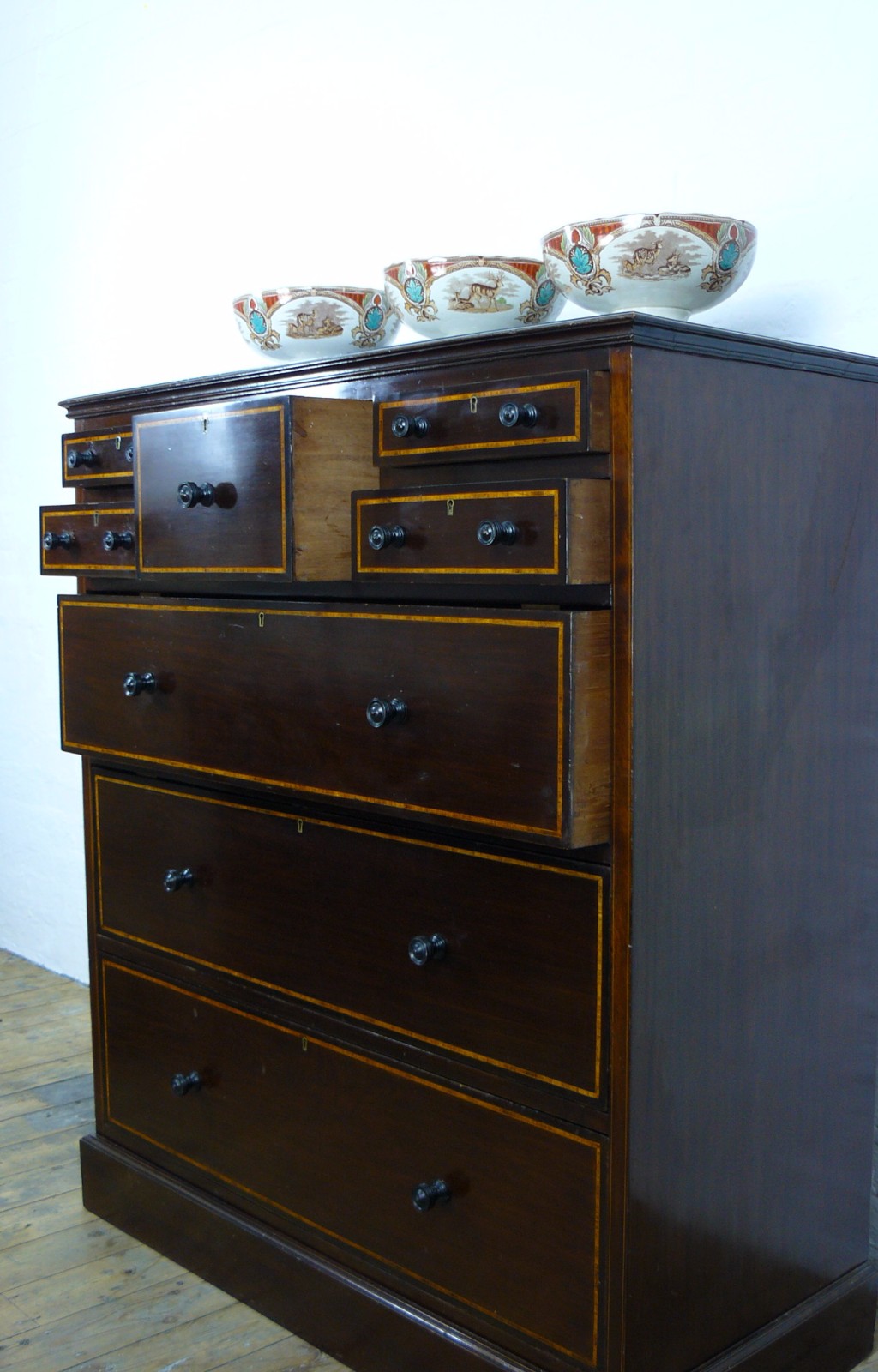 Large Edwardian Chest of 8 Inlaid Drawers with Ebonised Knobs