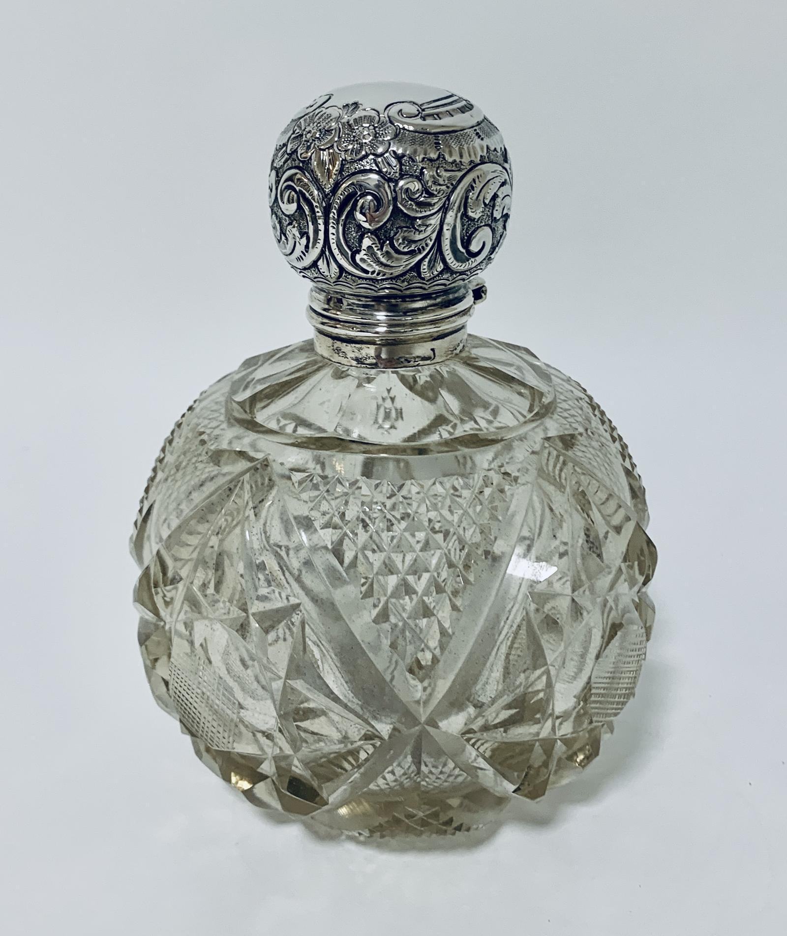 Large Edwardian Cut Glass Scent Bottle with Silver Top