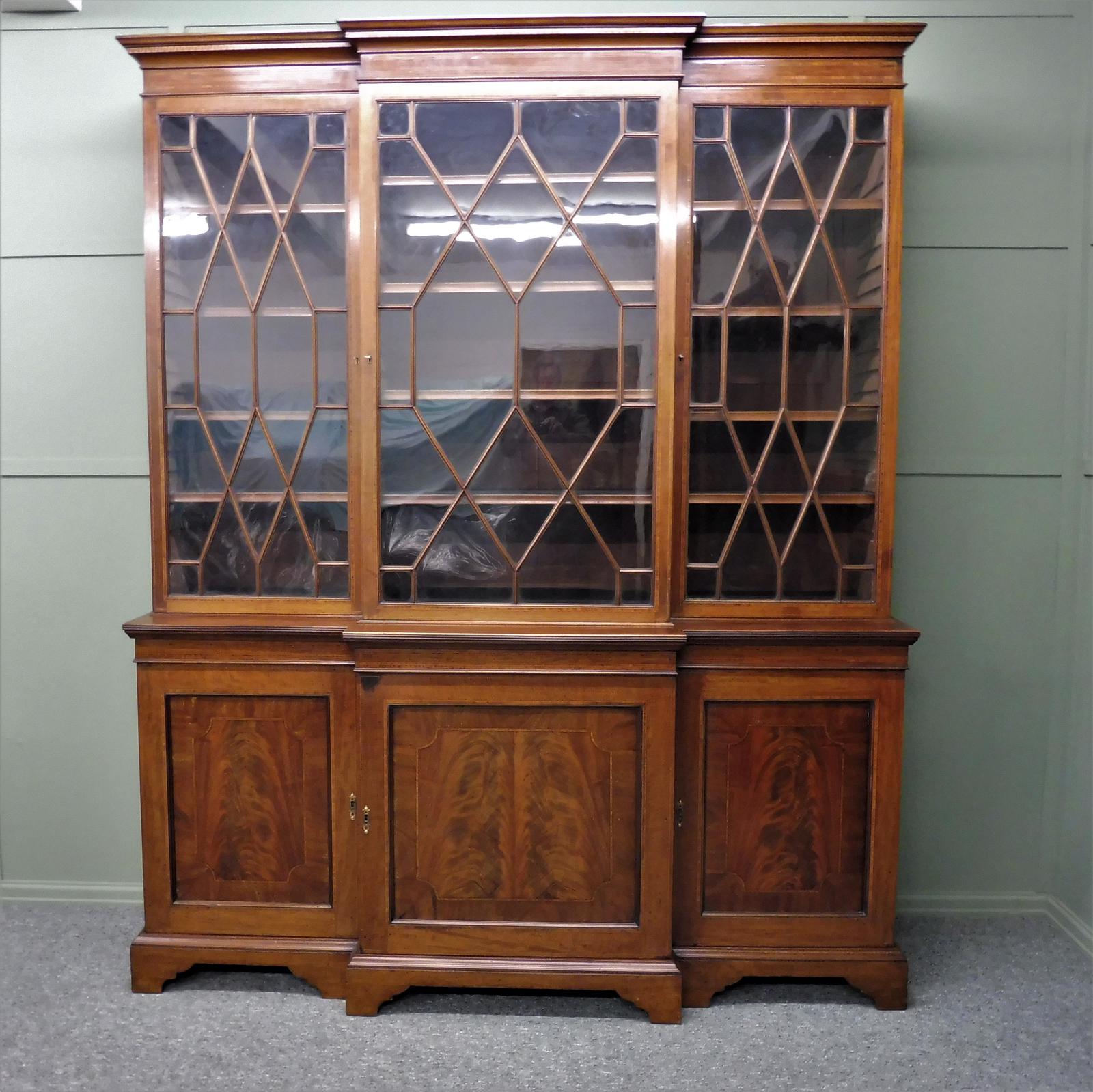 Large Edwardian Inlaid Library Bookcase