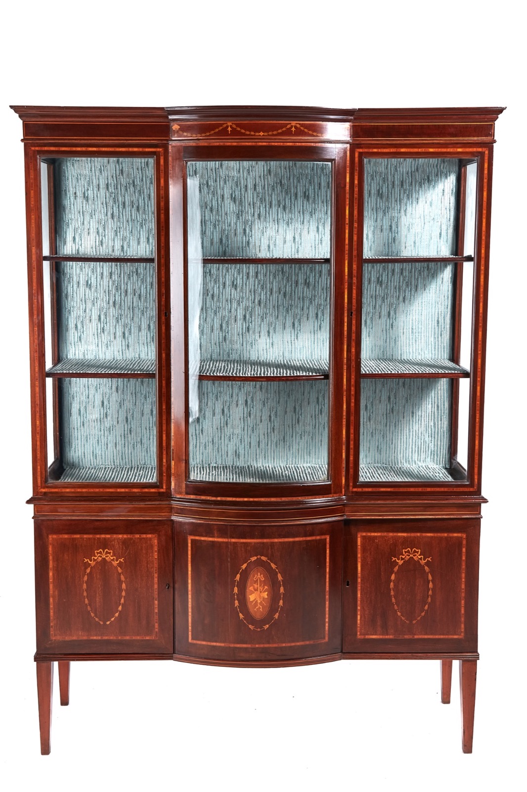 Large Edwardian Inlaid Mahogany Bow Front Display Cabinet