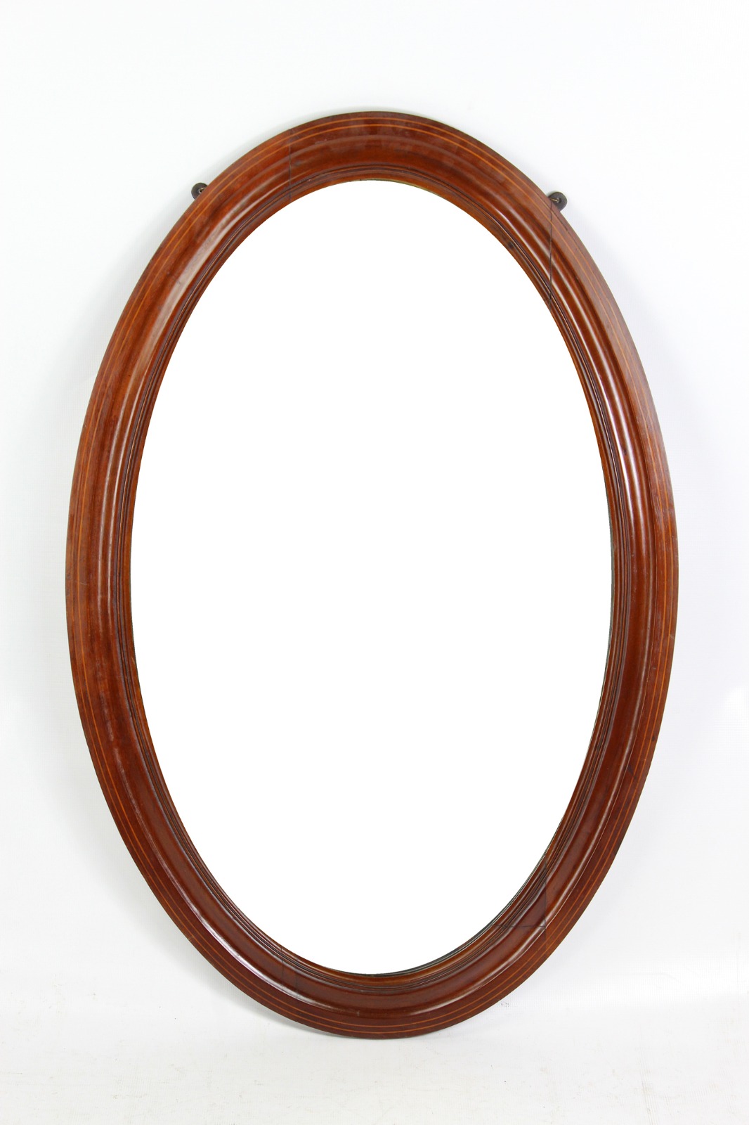 Large Edwardian Inlaid Mahogany Oval Mirror