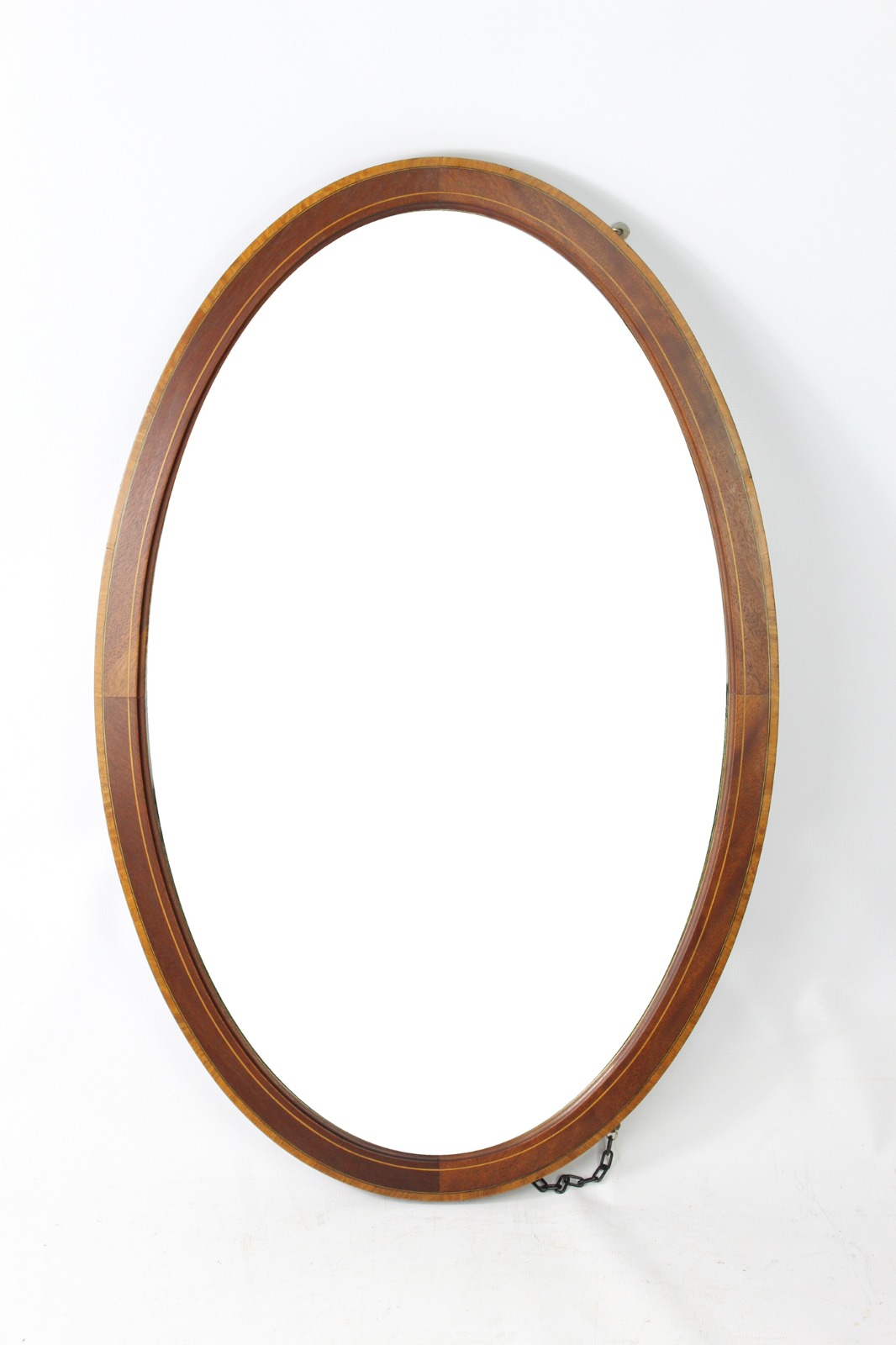 Large Edwardian Mahogany & Inlaid Oval Mirror