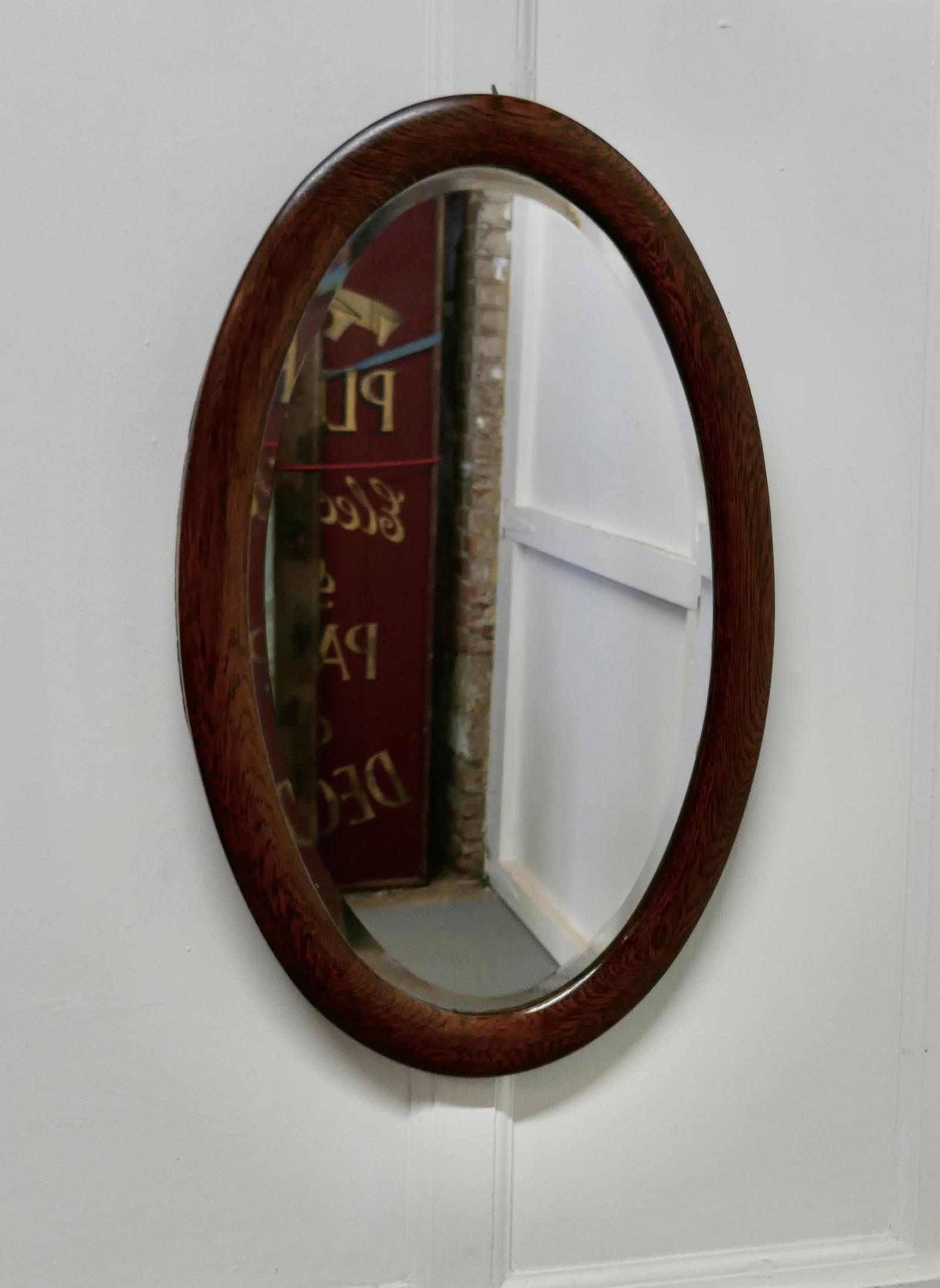 Large Edwardian Oak Oval Mirror