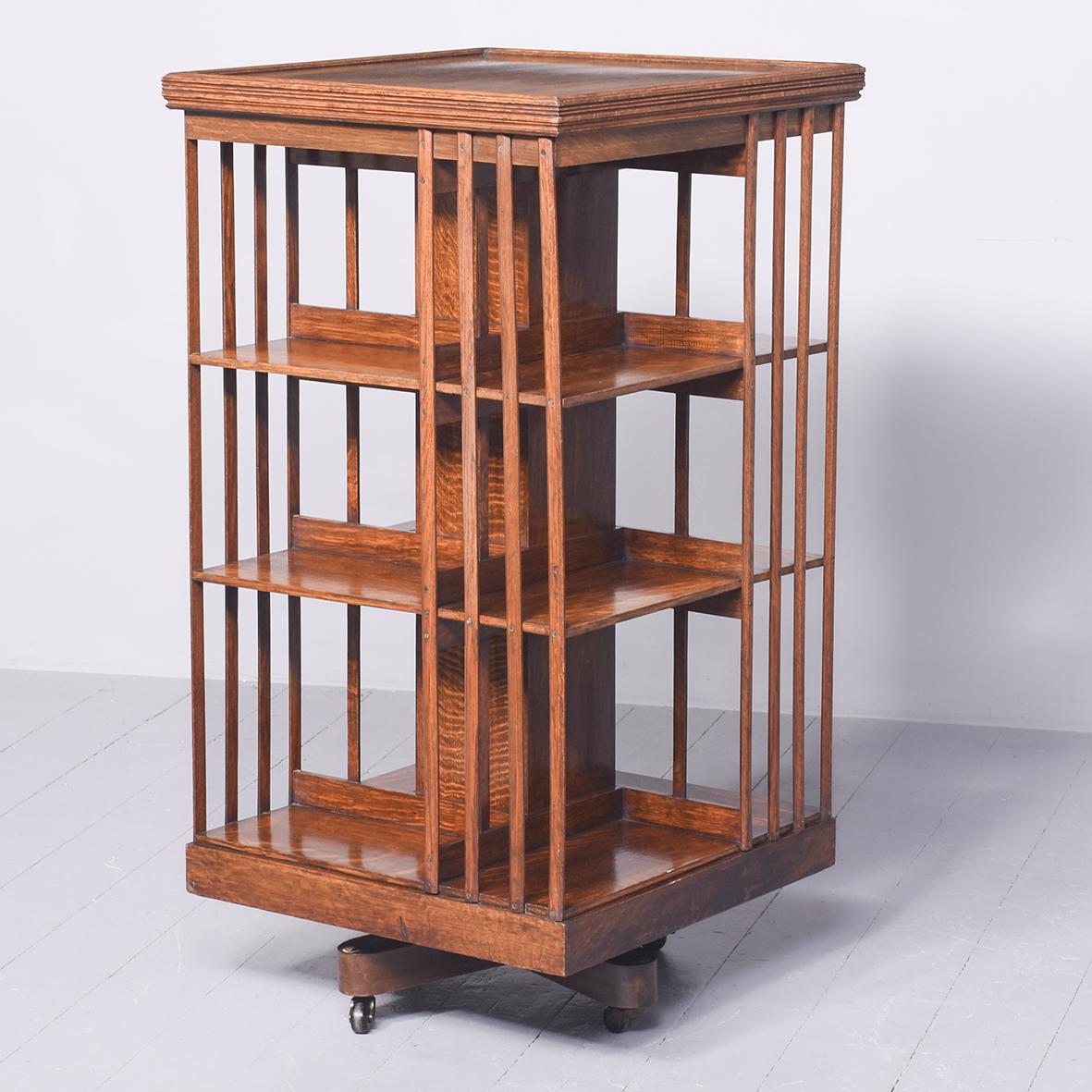Large Edwardian Oak Three-tier Revolving Bookcase