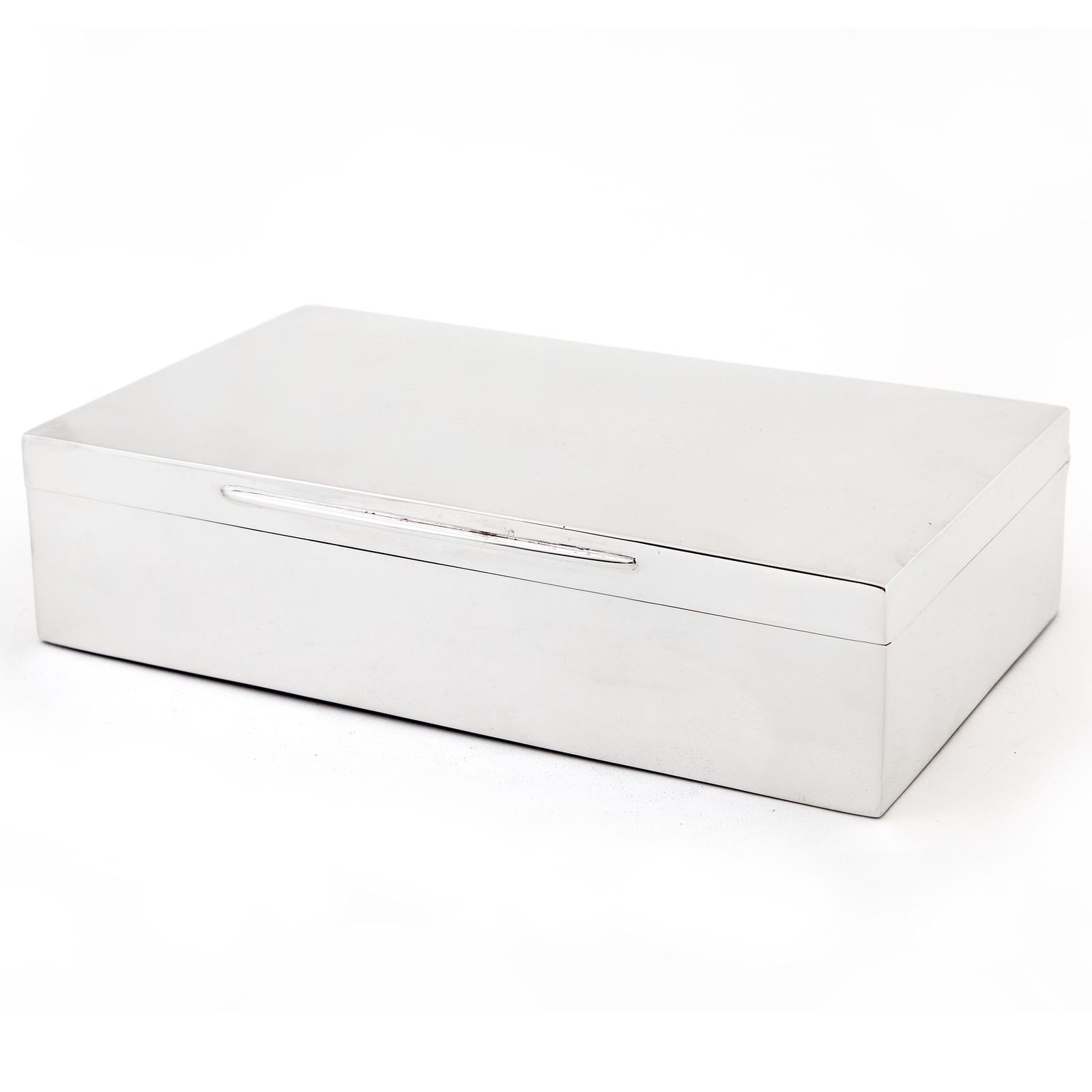 Large Edwardian Plain Silver Goldsmiths & Silversmiths Table Cigar Box