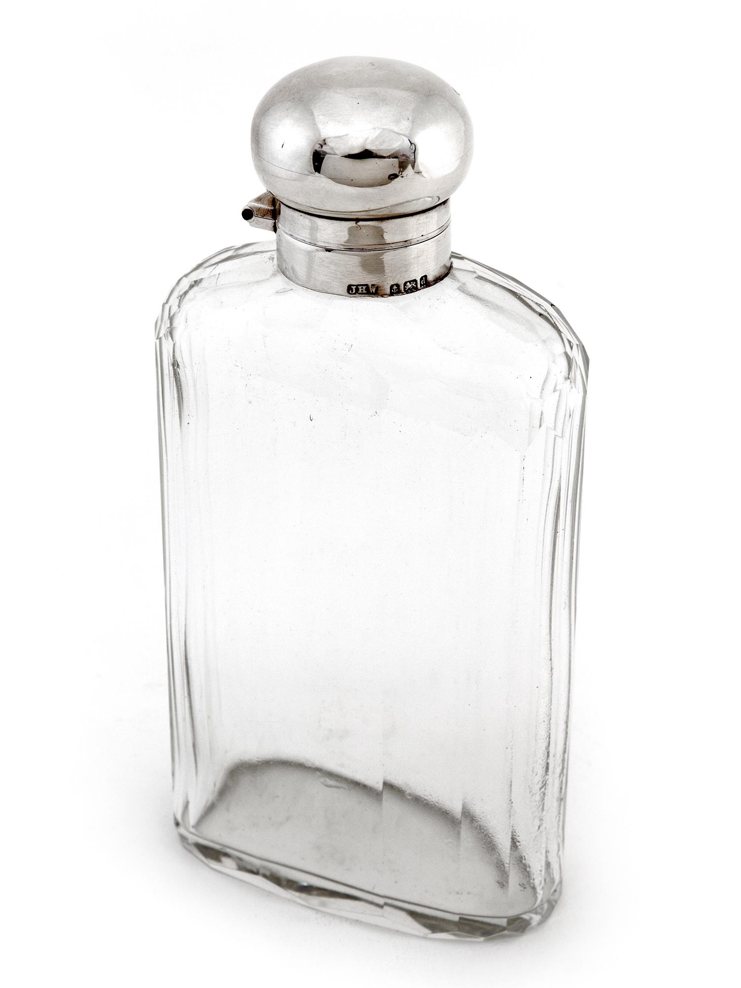 Large Edwardian Silver and Glass Hip Flask (1 of 4)