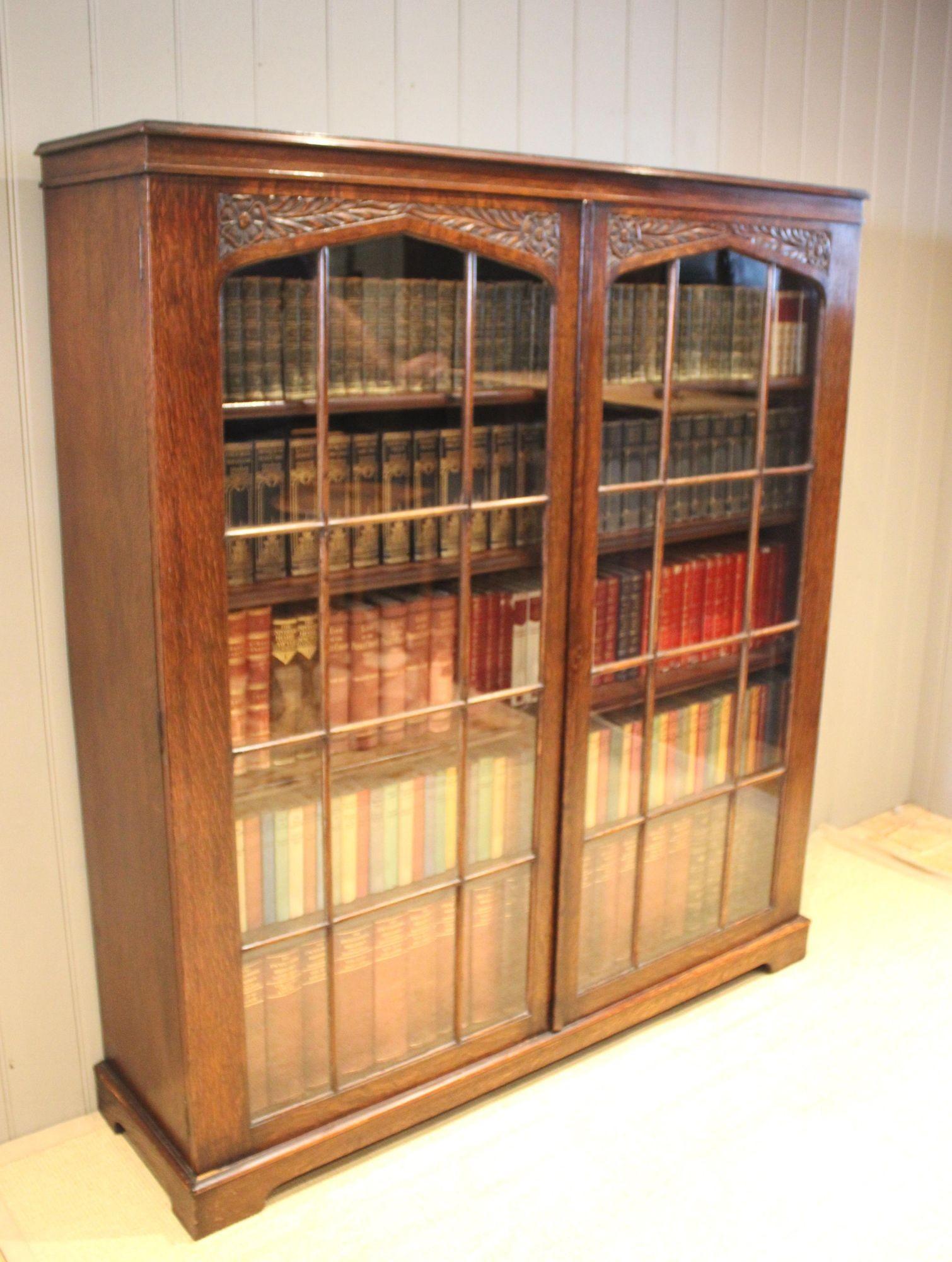 Large Edwardian Solid Oak Two Door Bookcase (1 of 13)
