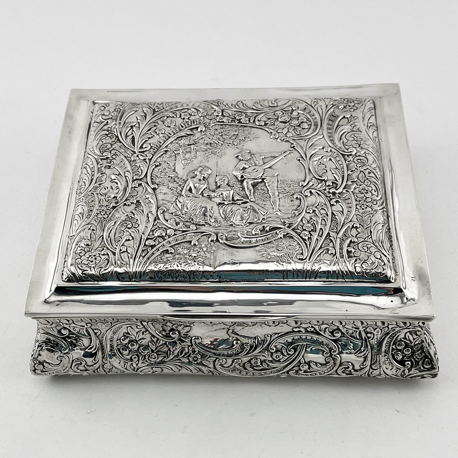 Large Edwardian Sterling Silver Jewellery or Trinket Box (1 of 8)