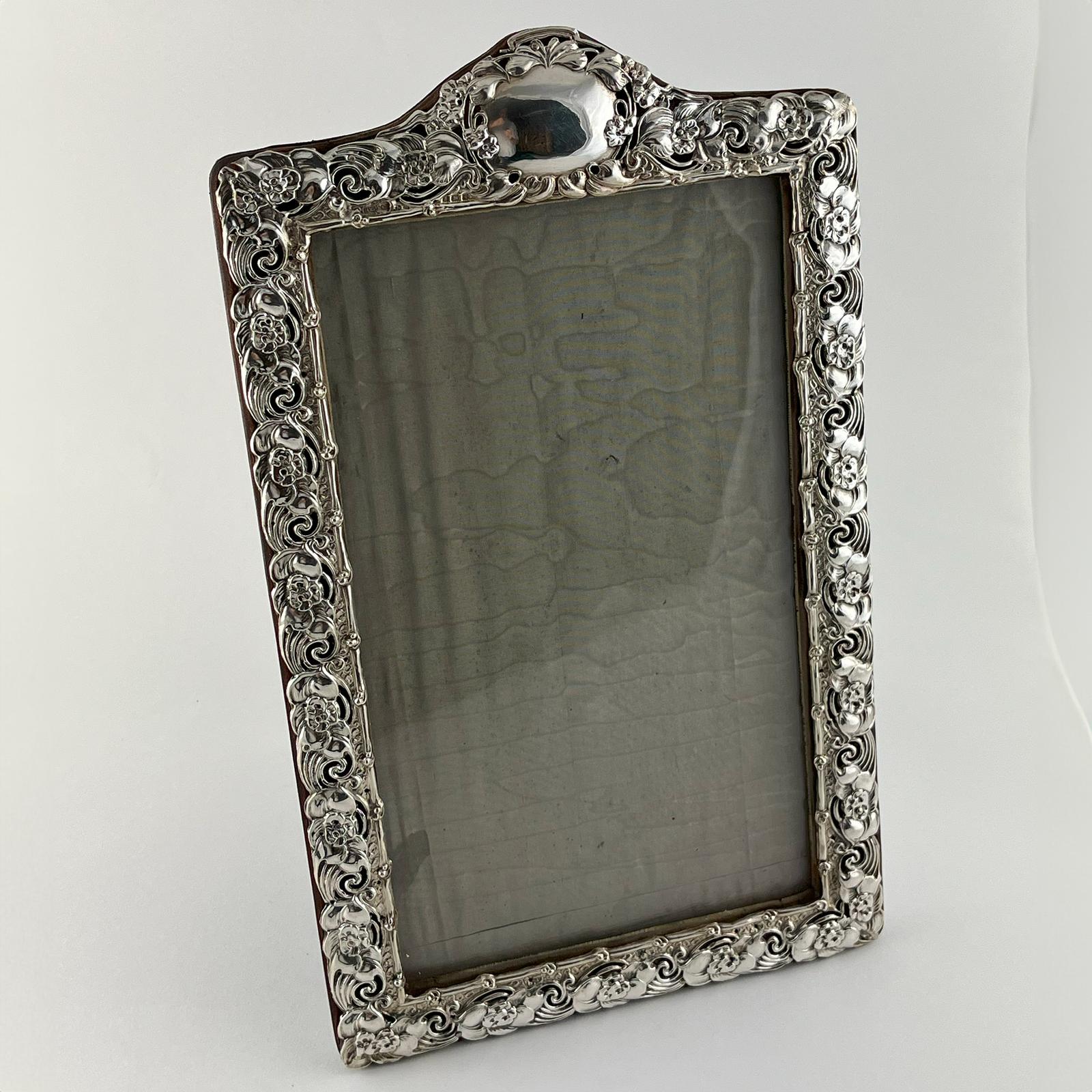 Large Edwardian Sterling Silver Photo Frame with Floral and Scroll Decoration
