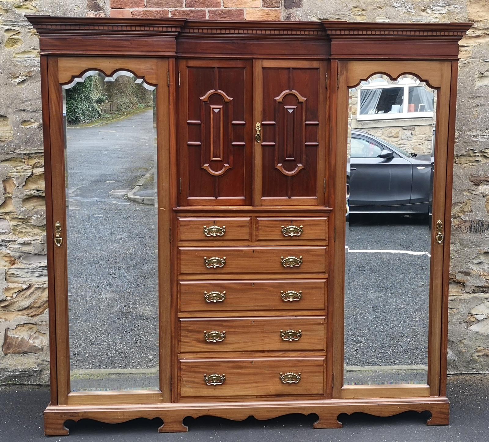 Large Edwardian Walnut Breakfront Princess Wardrobe