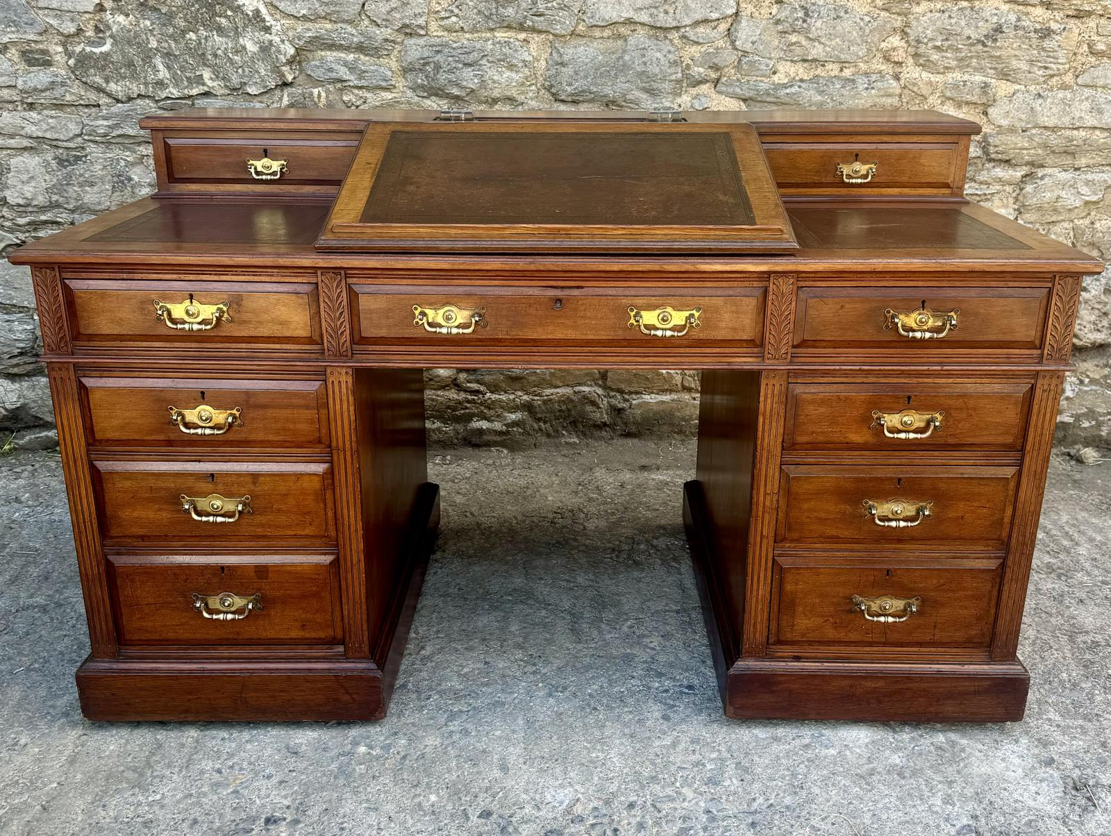Large Edwardian Walnut Pedestal Desk (1 of 17)