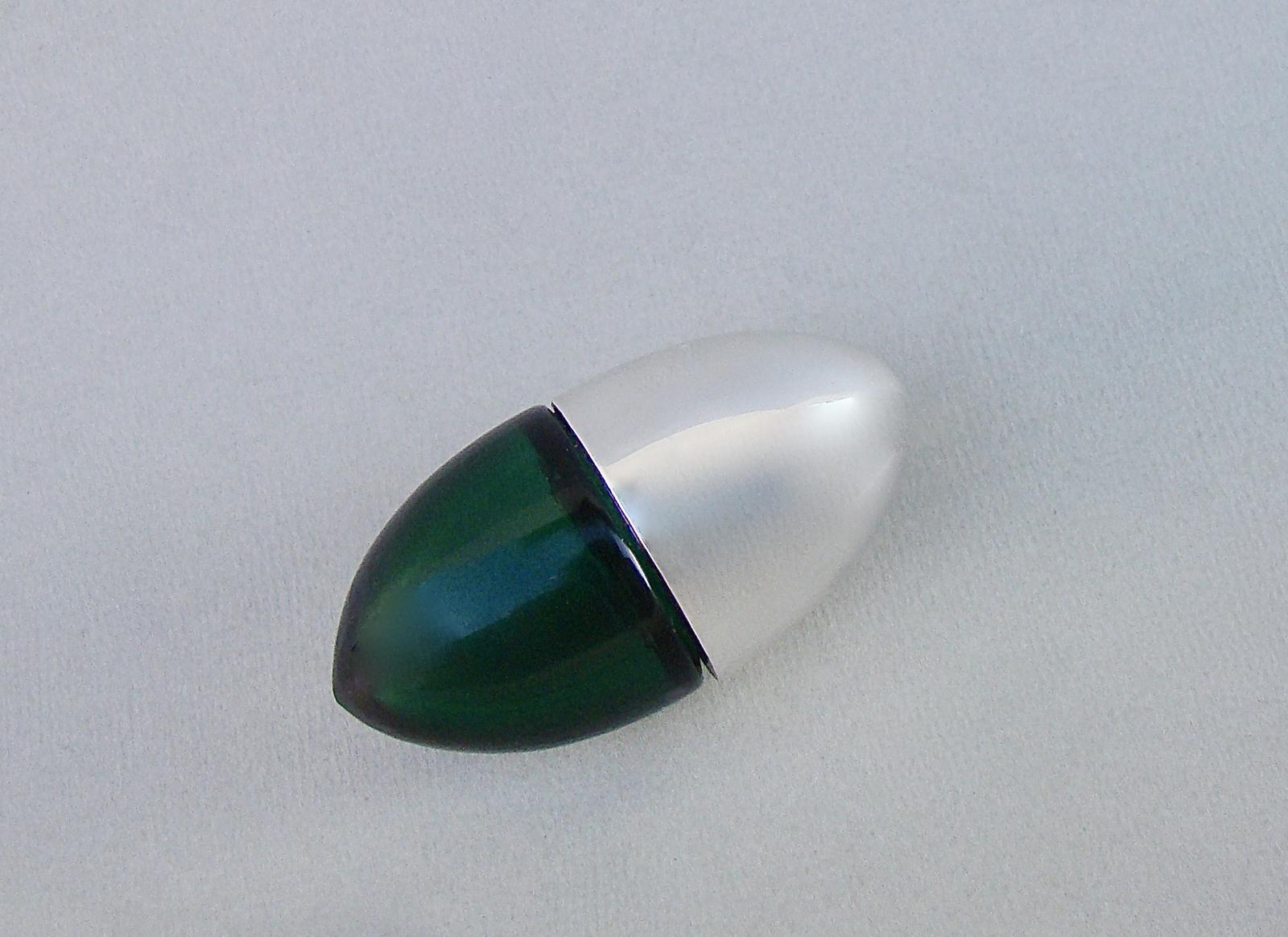 Large Emerald Green Glass Bullet Shaped Scent Bottle with Silver Plated Lid c.1900