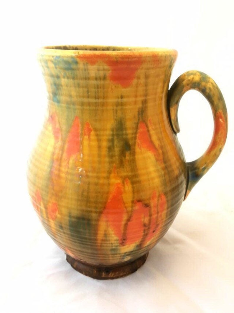 Large English Crown Ducal Charlotte Rhead Era Drip Glaze Jug, Kitchen Decor, Gift for Her, Retro Kitchenalia, Orange Yellow Green