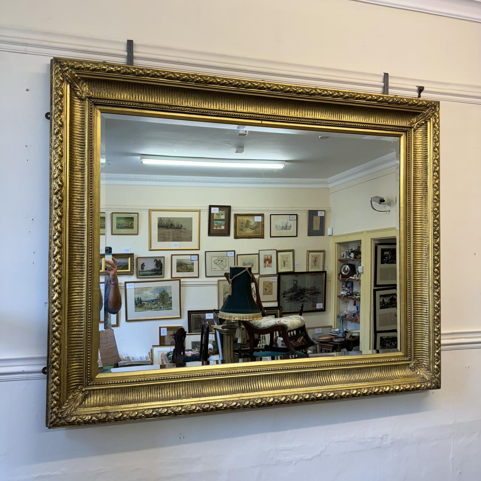 Large English Gilt Overmantle Bevelled Mirror (1 of 8)