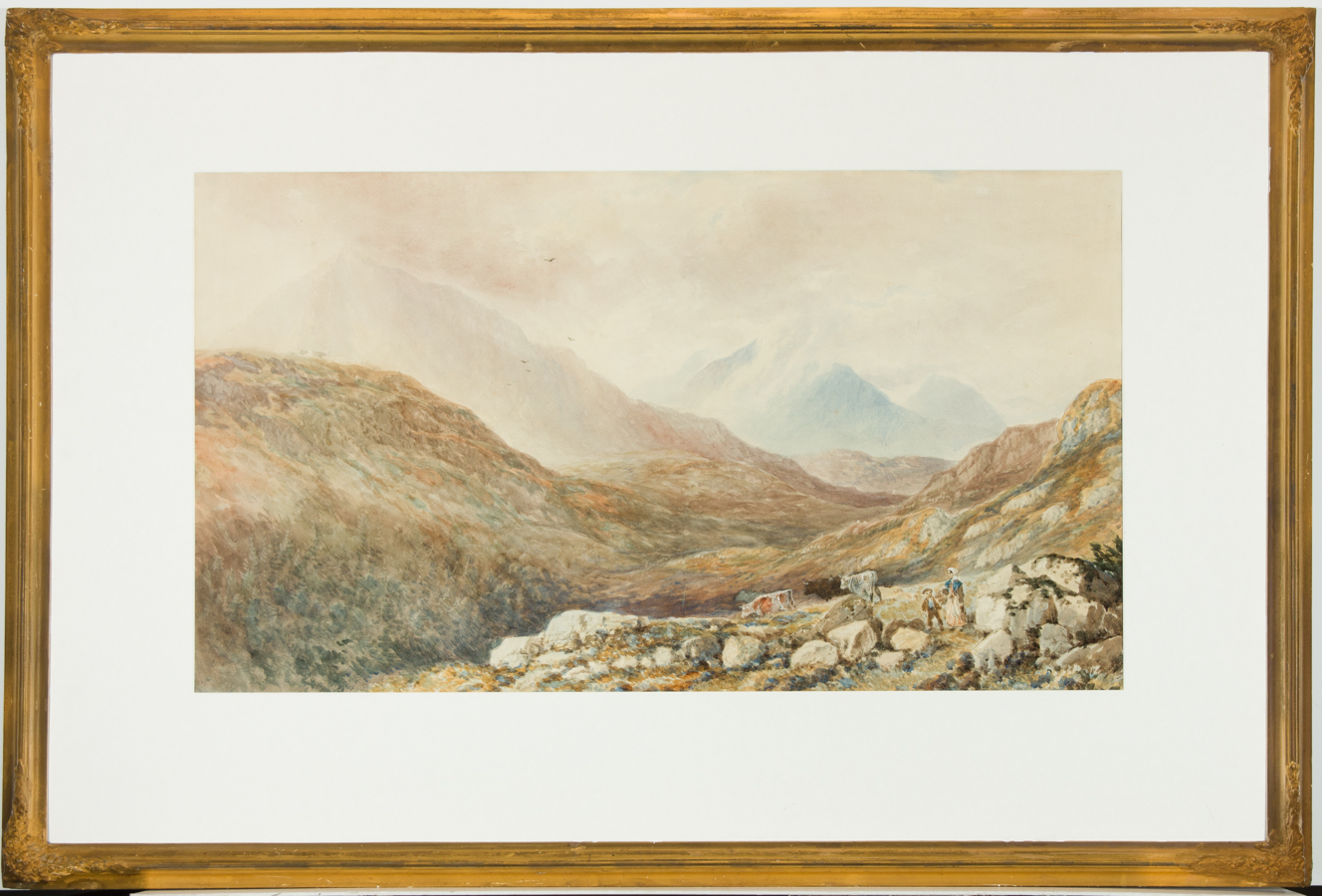Large English School 19th Century Watercolour - Figures in Highland Landscape