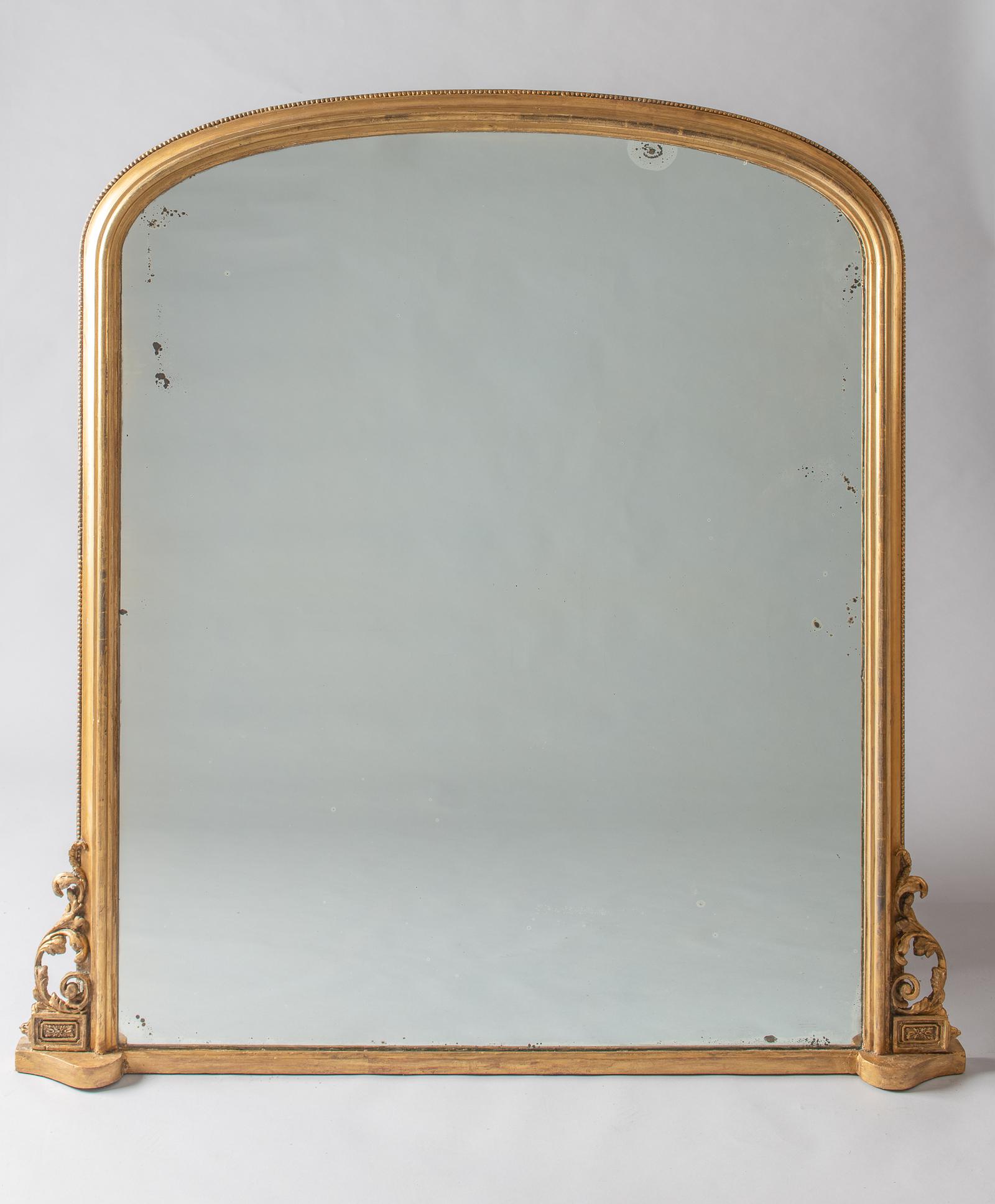 Large English Victorian Gilt Archtop Overmantle Mirror