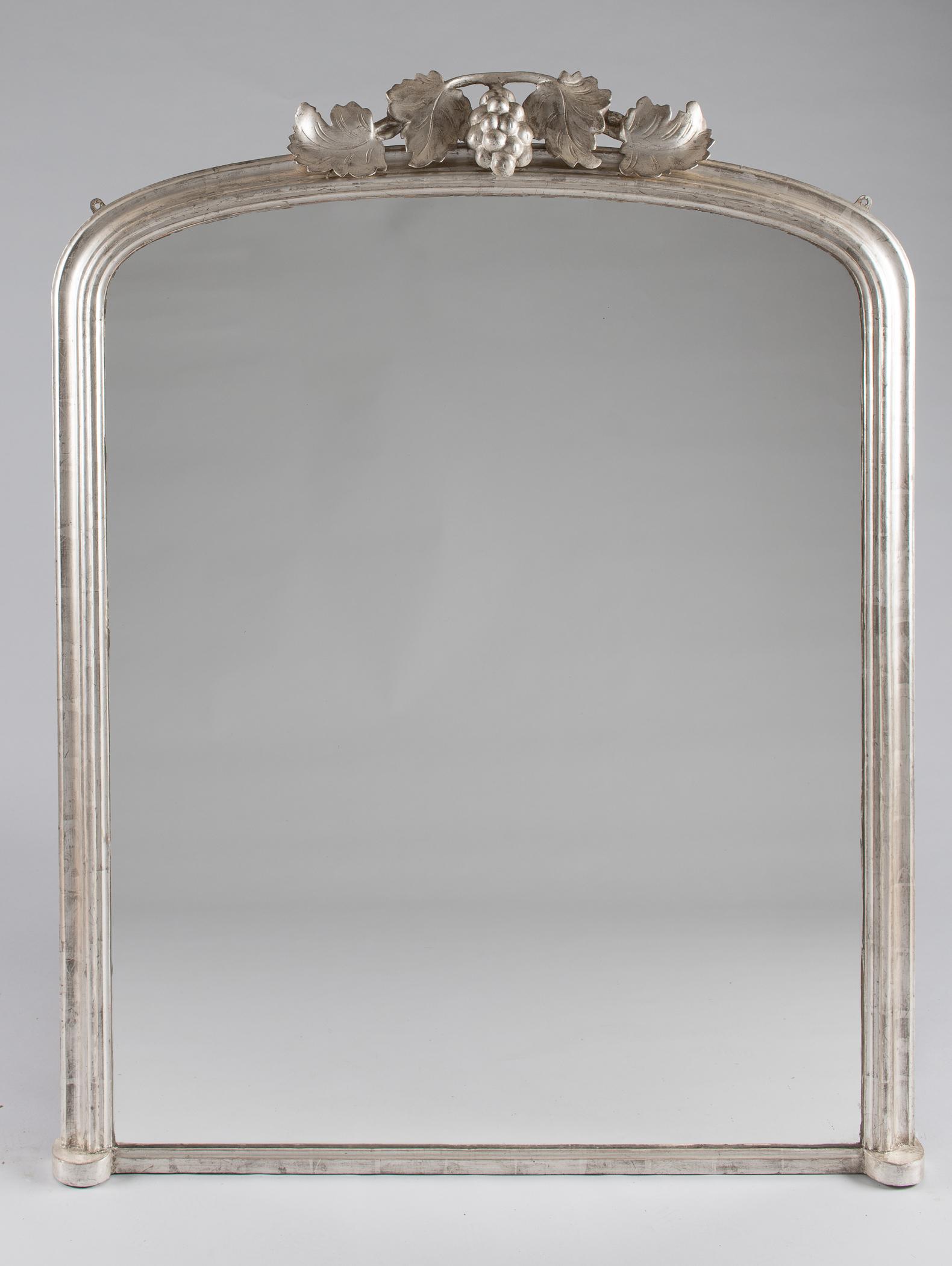 Large English Victorian Silvered Archtop Overmantle Mirror