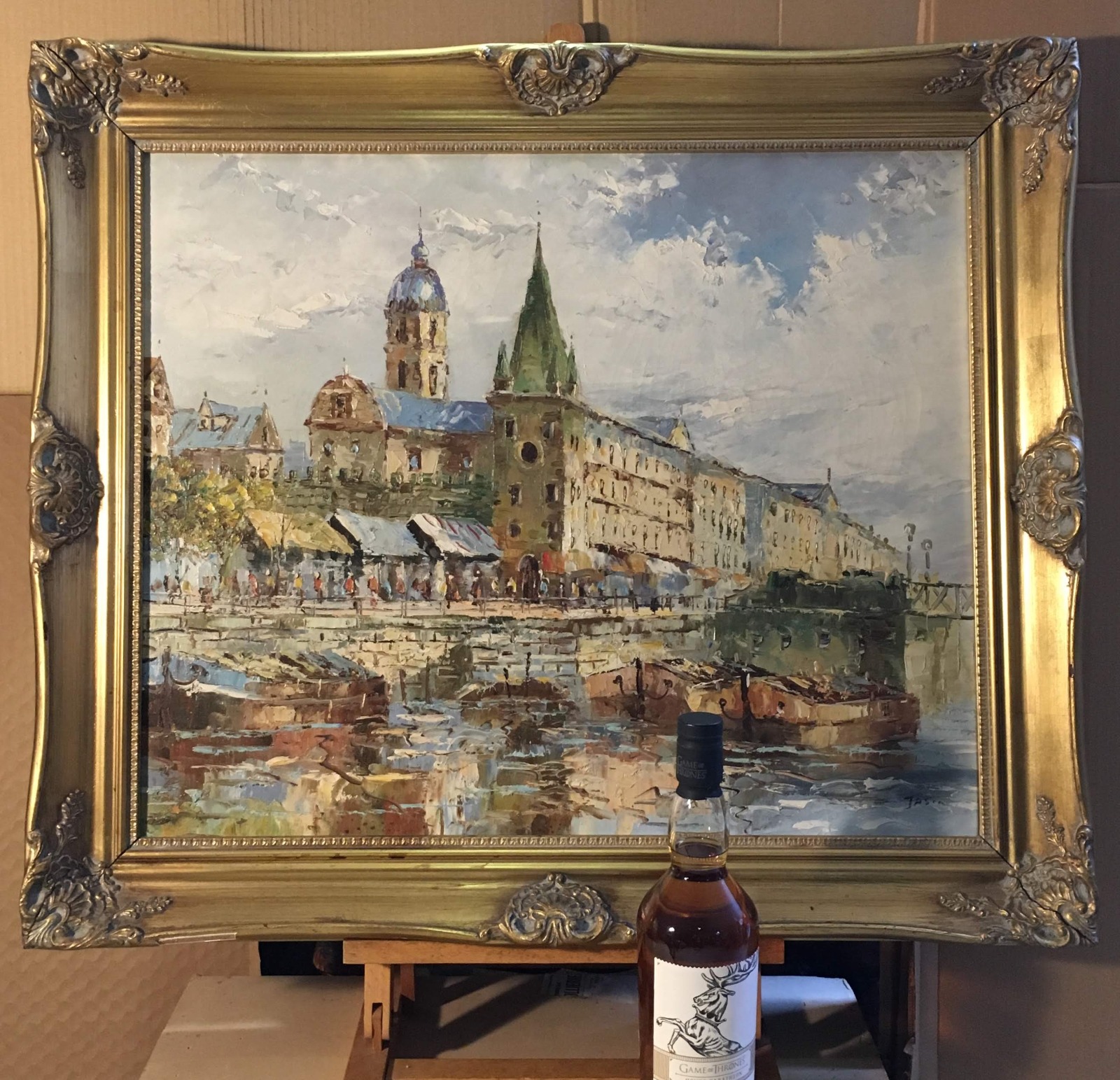 Large European School City Riverscape Oil Painting - Paris Prague Dresden