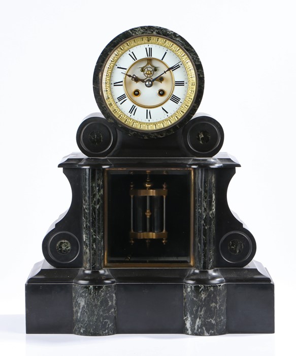 Large Fine Quality Victorian Black Slate & Marble Mantel Clock