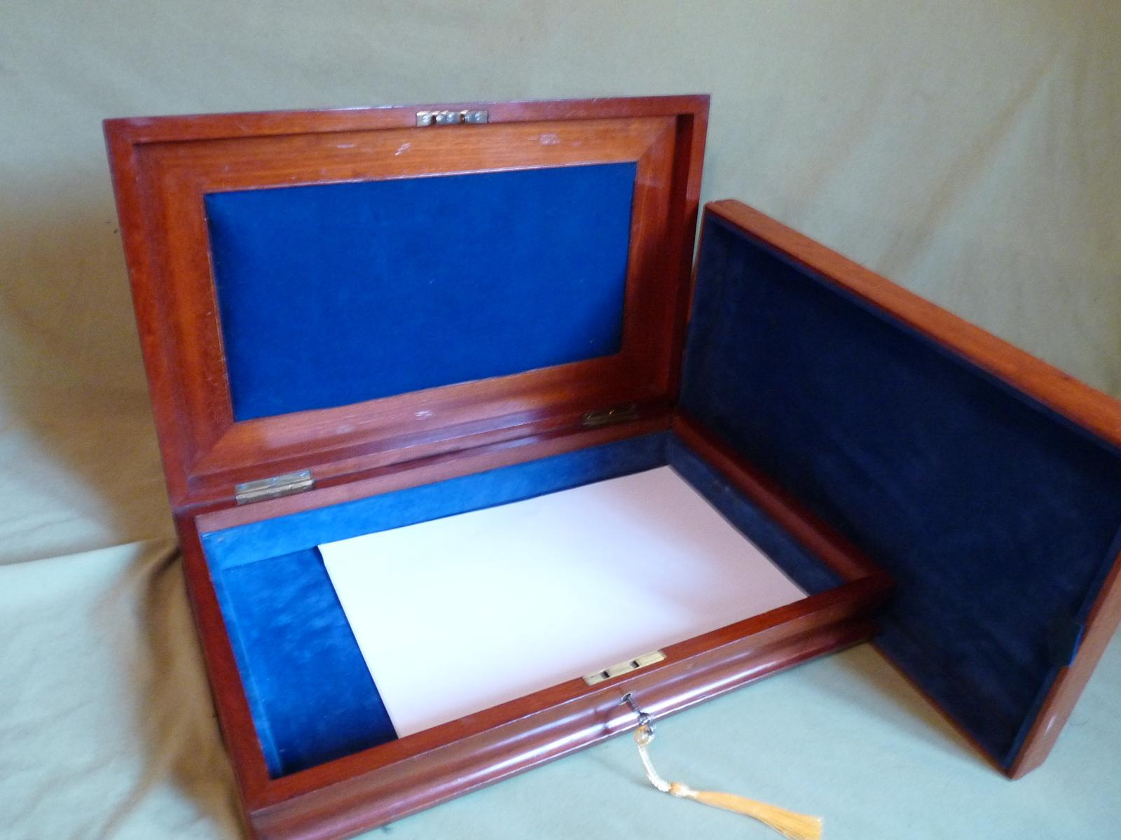 Large Flame Mahogany Document- Storage Box + Tray.