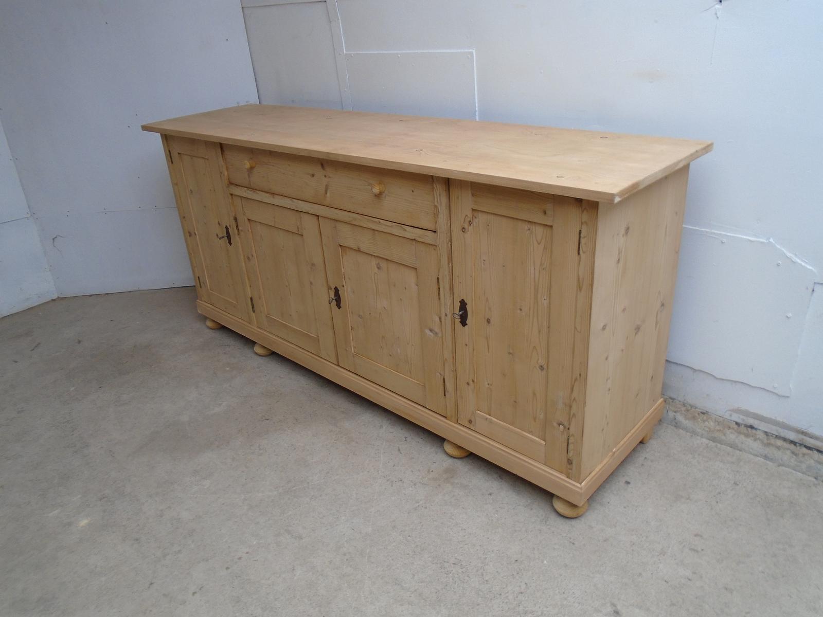 Large Flat 4 Door Antique Pine Dresser Base / TV Stand to wax / paint