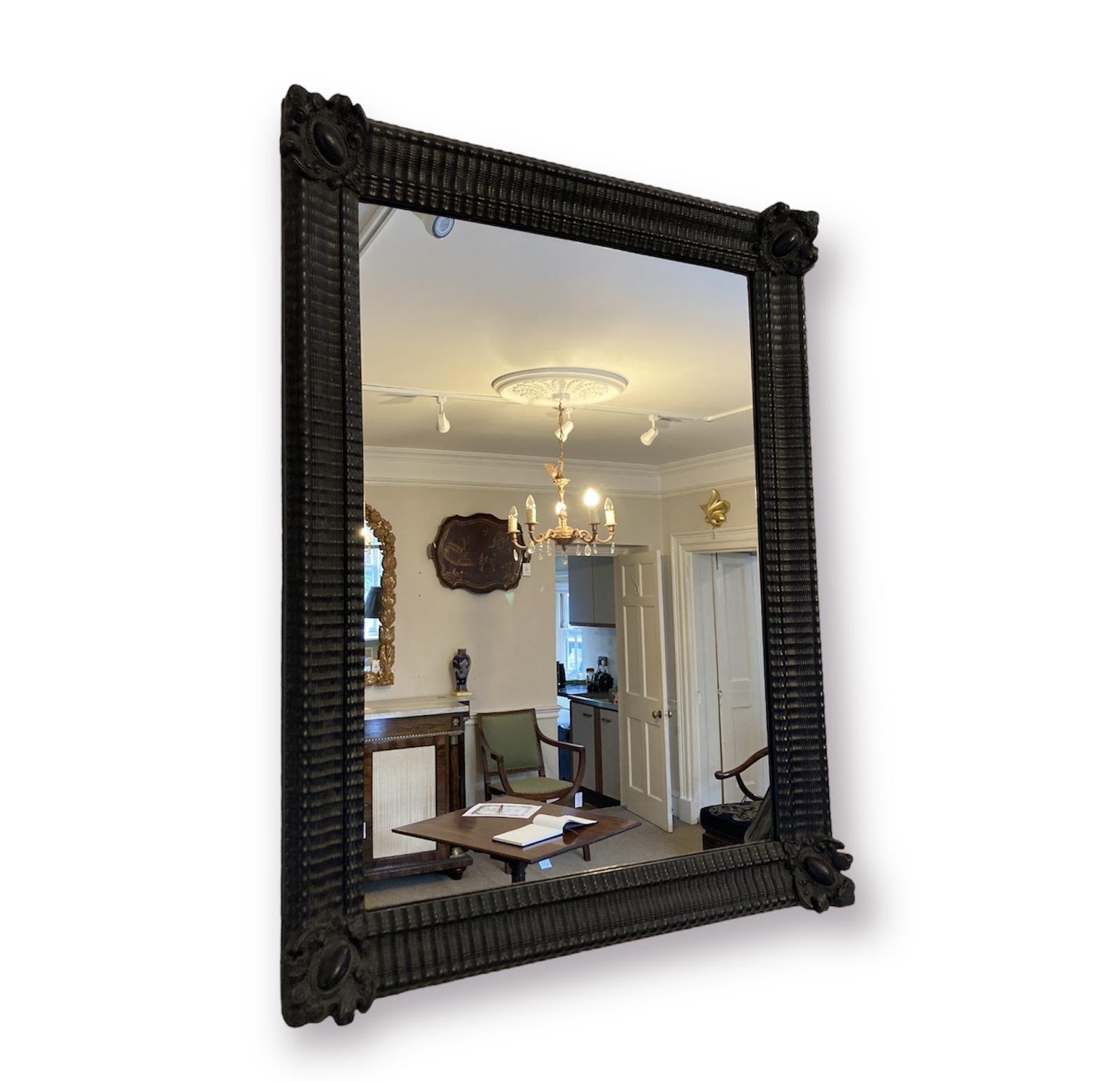 Large Flemish Ebonised Carved Wood Ripple Frame Mirror