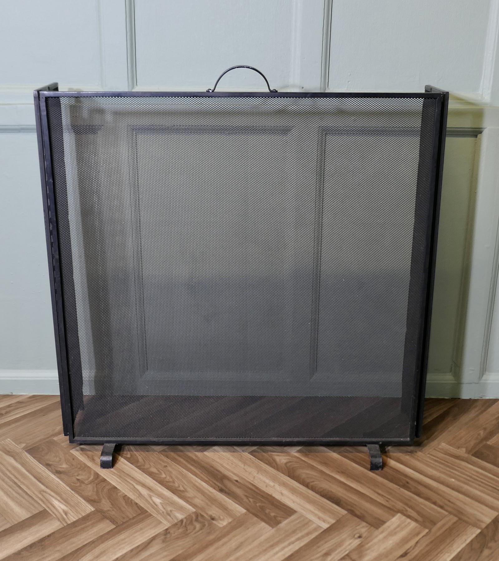 Large Folding Black Iron Mesh Fire Guard