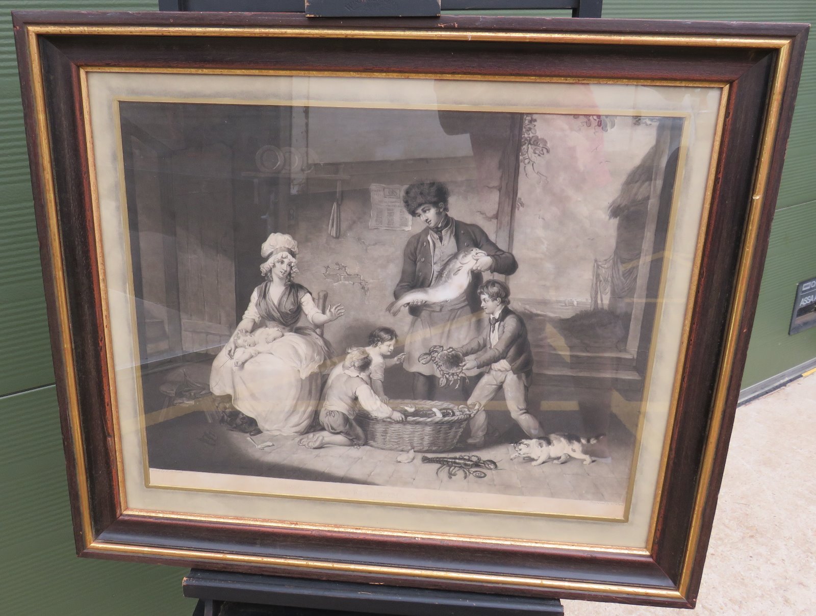 Large Framed Antique Engraving 'The Fisherman's Return' by Ward after Corbould