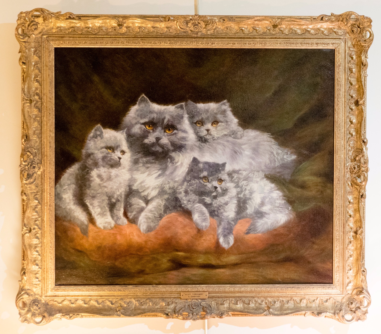 Large Framed Oil on Canvas of Blue Persians by Lilian Cheviot