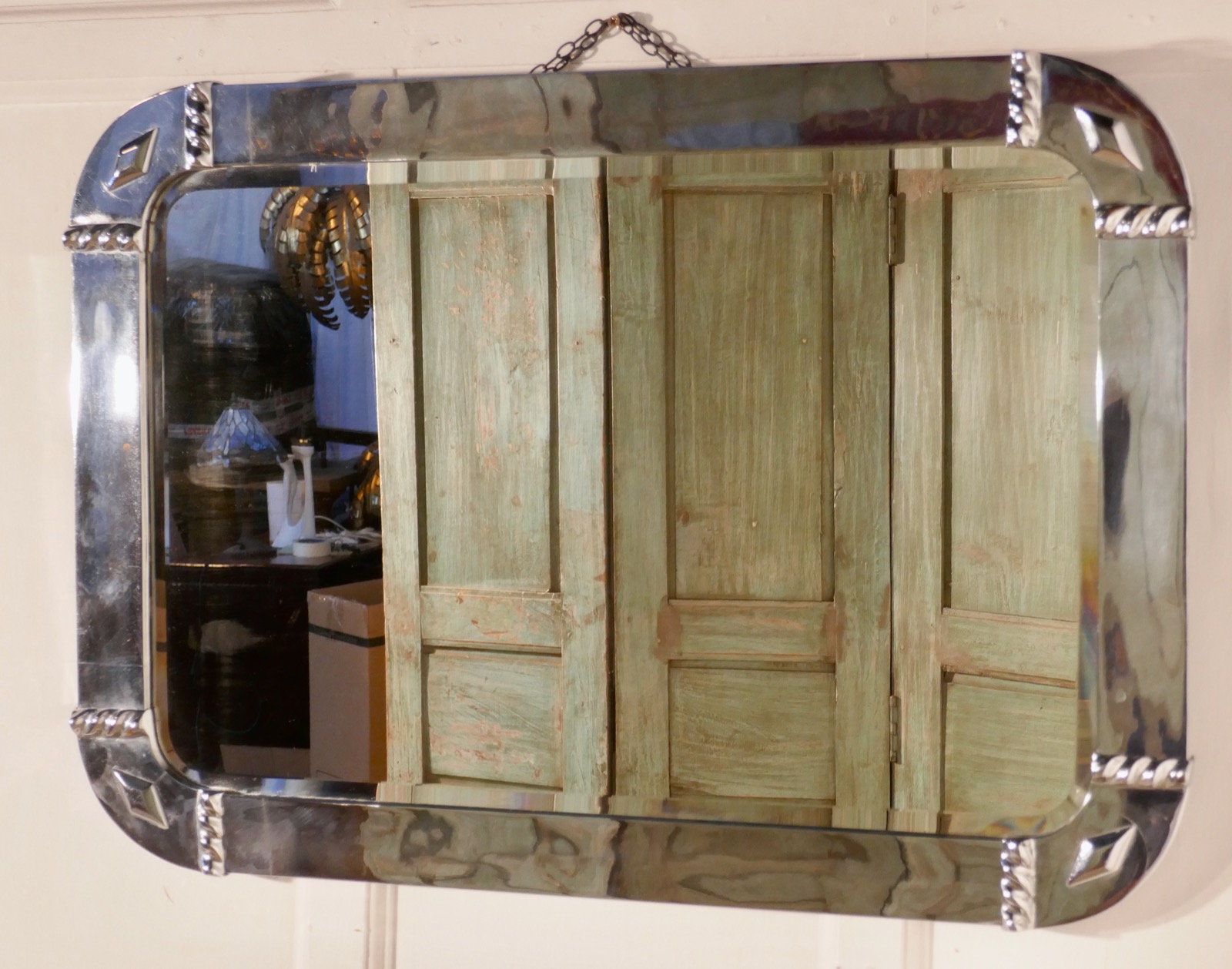 Large French Art Deco Chrome Wall Mirror