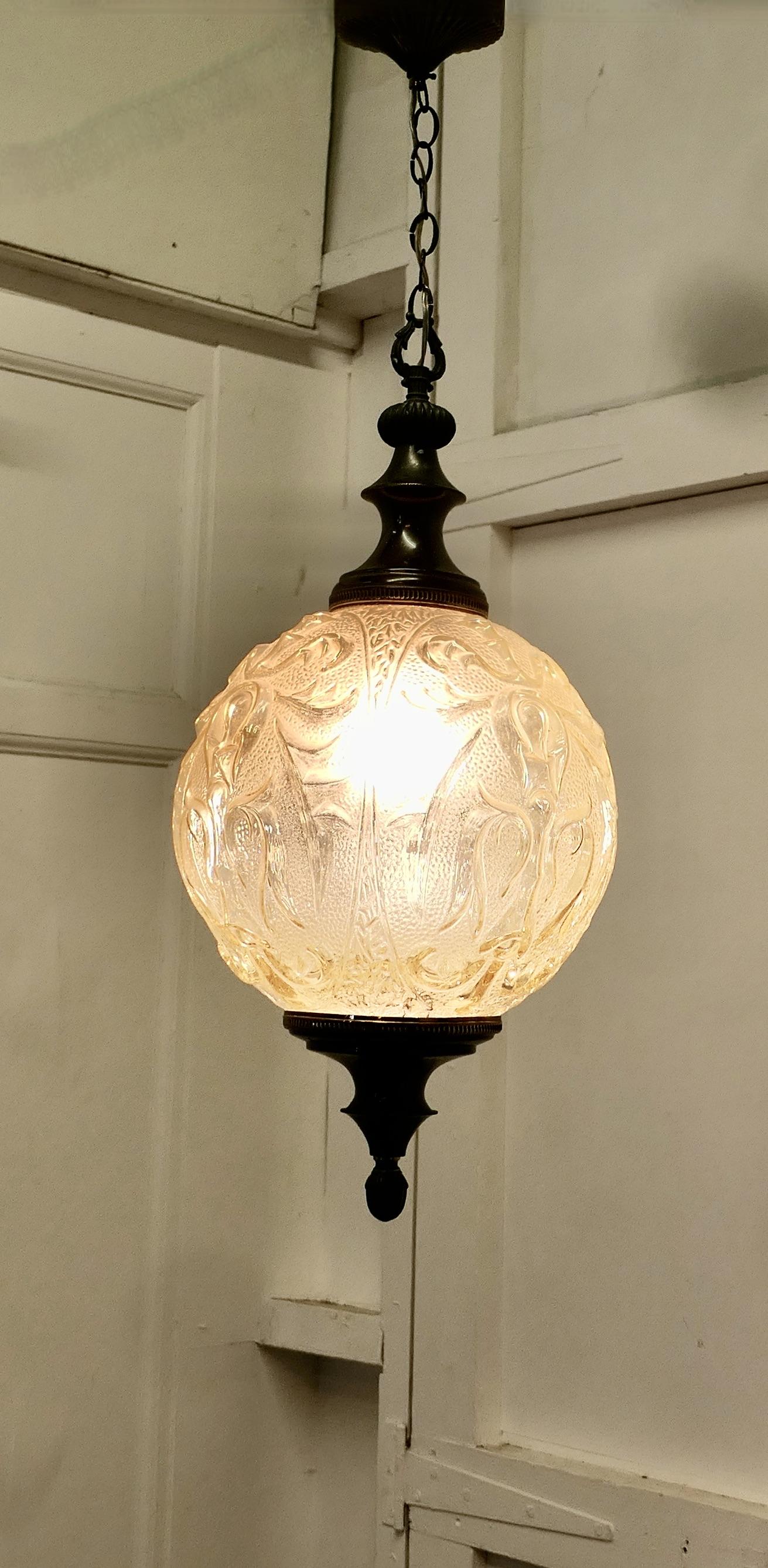 Large French Art Deco Globe Glass Hanging Pendant Light