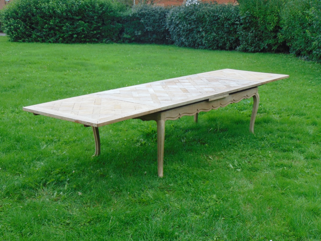 Large French Bleached Oak Draw Leaf Dining Table c.1910