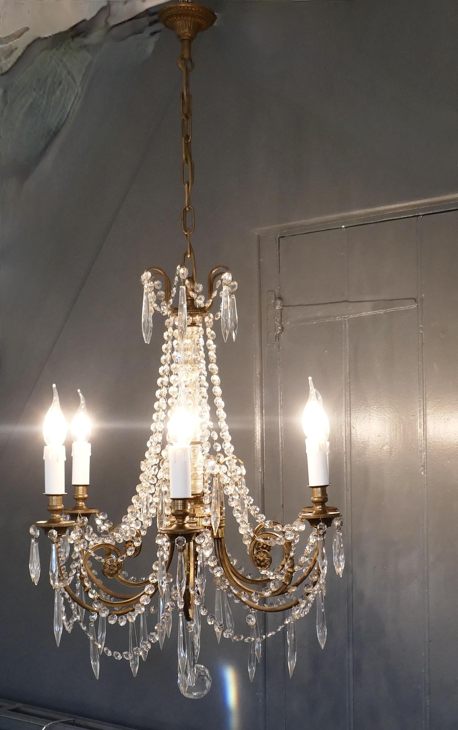 Large French Crystal 6 Branch Salon Chandelier