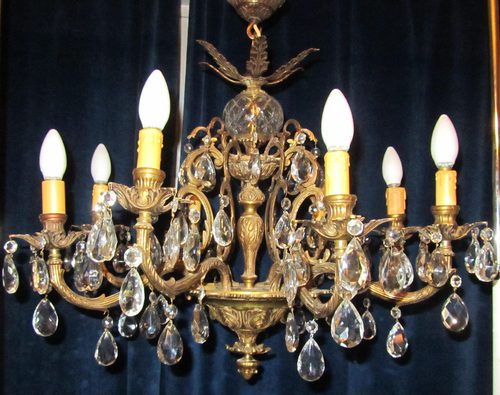 Large French Cut Glass 8 Branch Brass Chandelier c.1920
