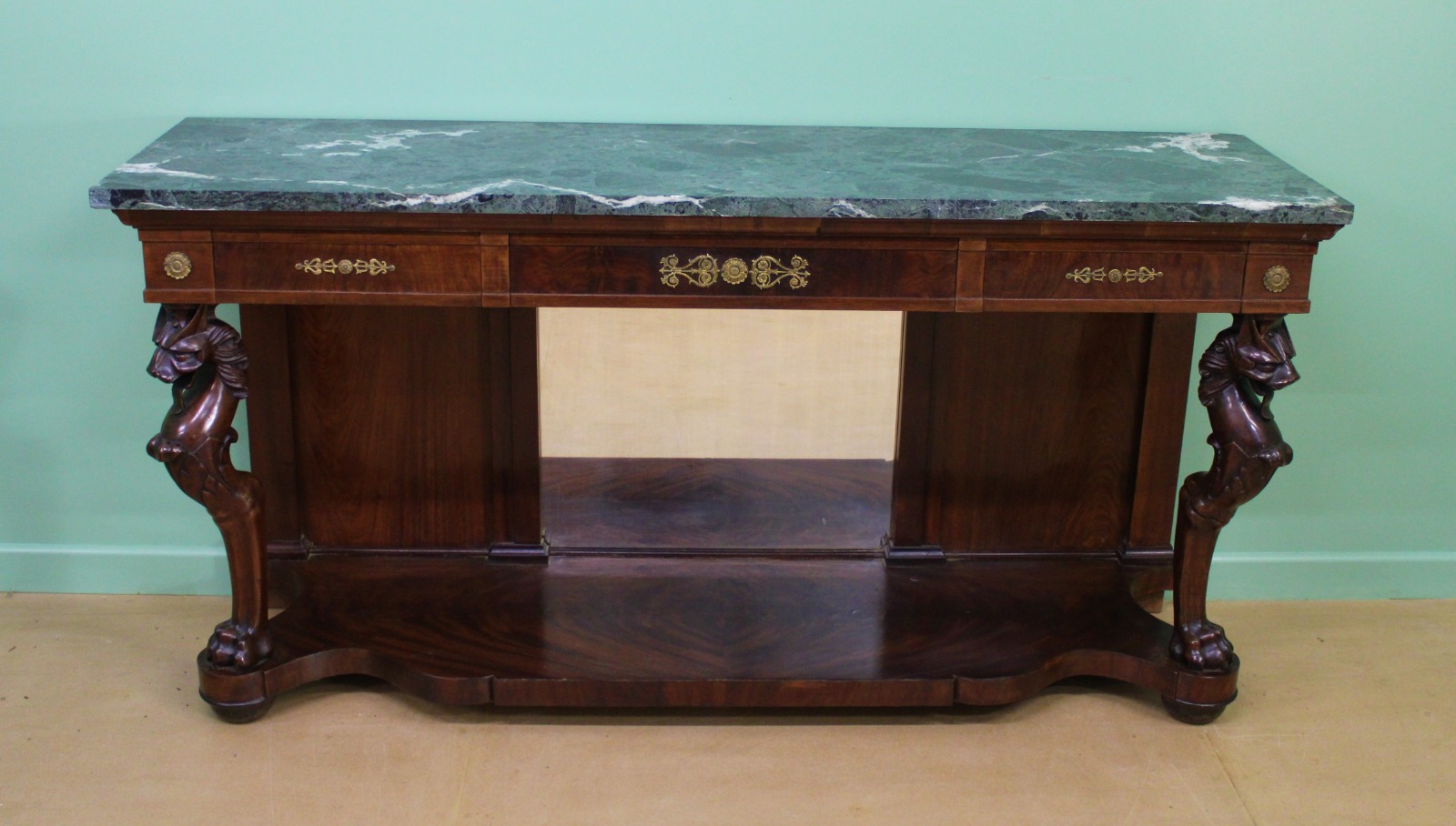 Large French Empire Marble Topped Mahogany Console Table (1 of 18)