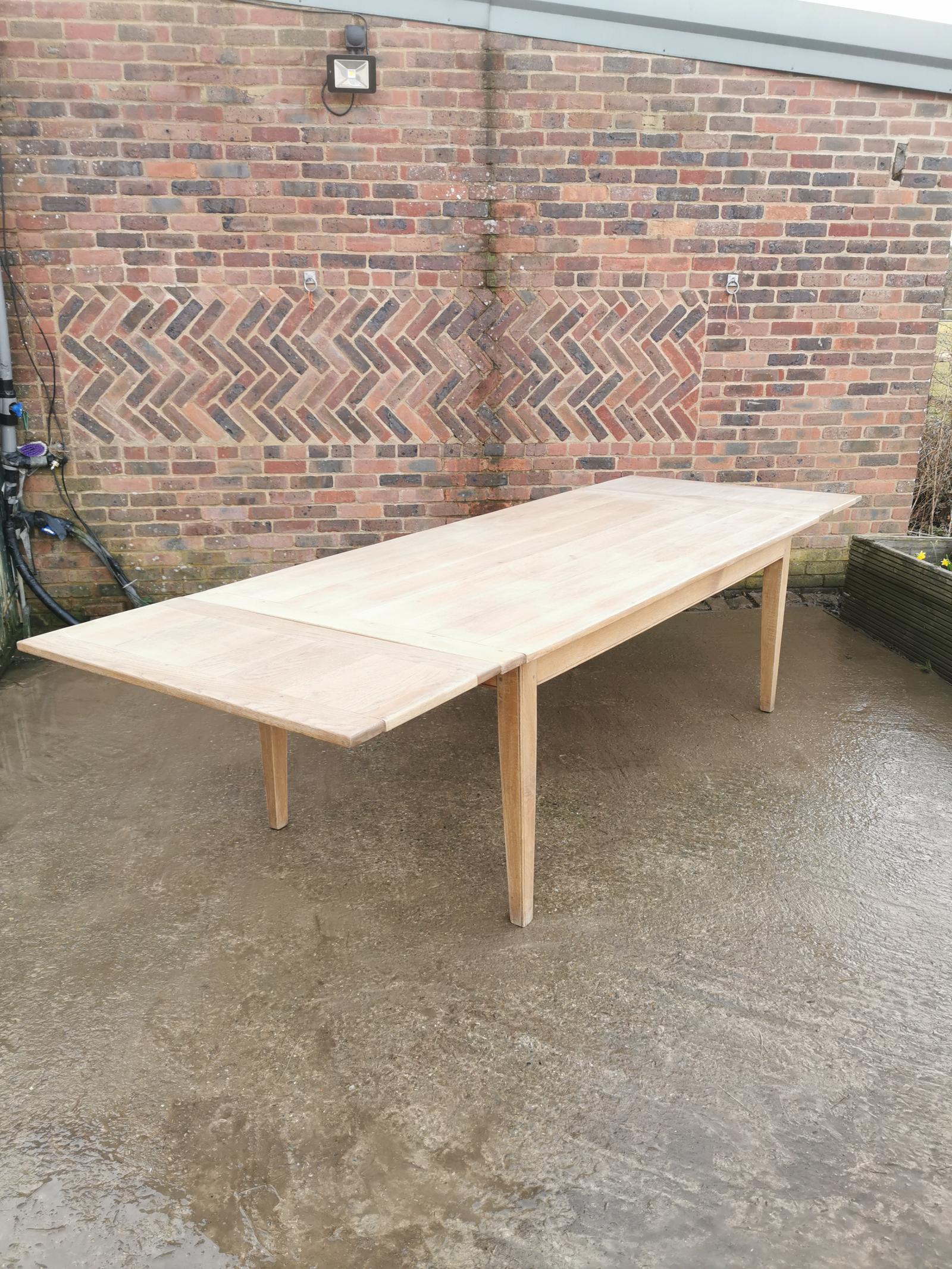 Large French Farmhouse Bleached Oak Dining Table
