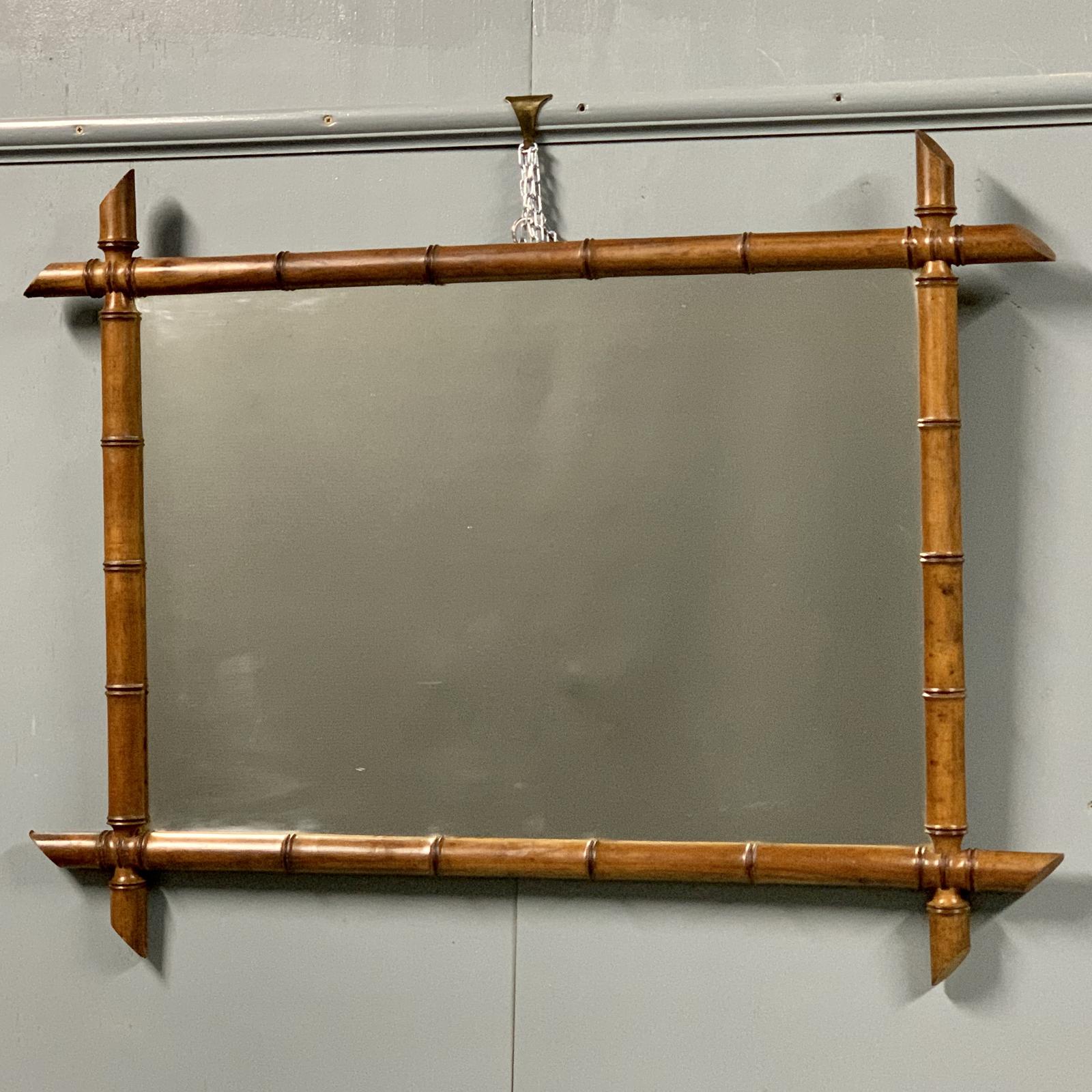 Large French faux bamboo mirror with original glass