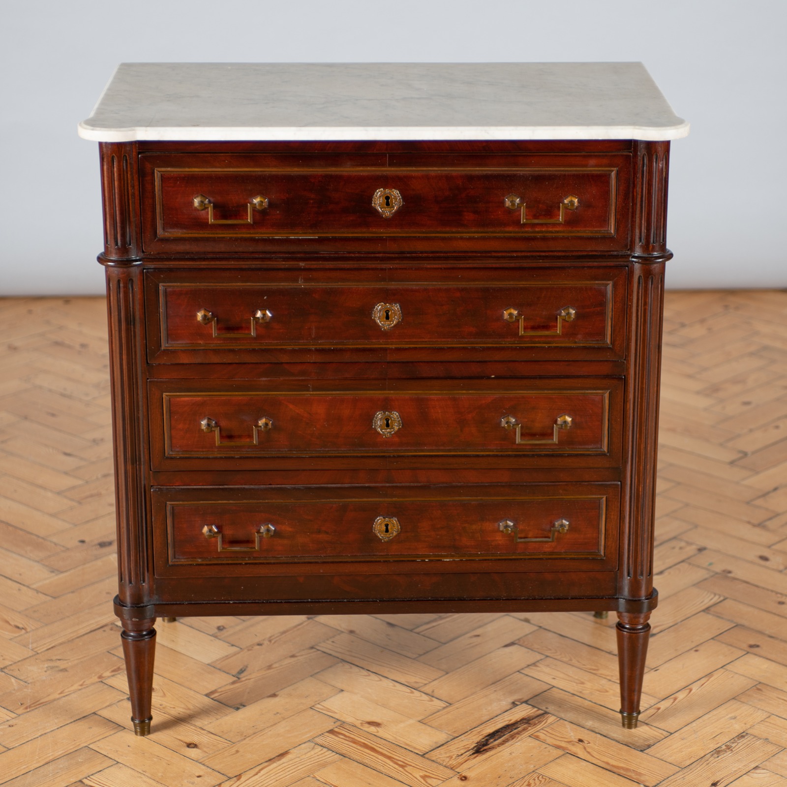 Large French Four Drawer Mahogany Tall Chest of Drawers with Marble Top (1 of 4)