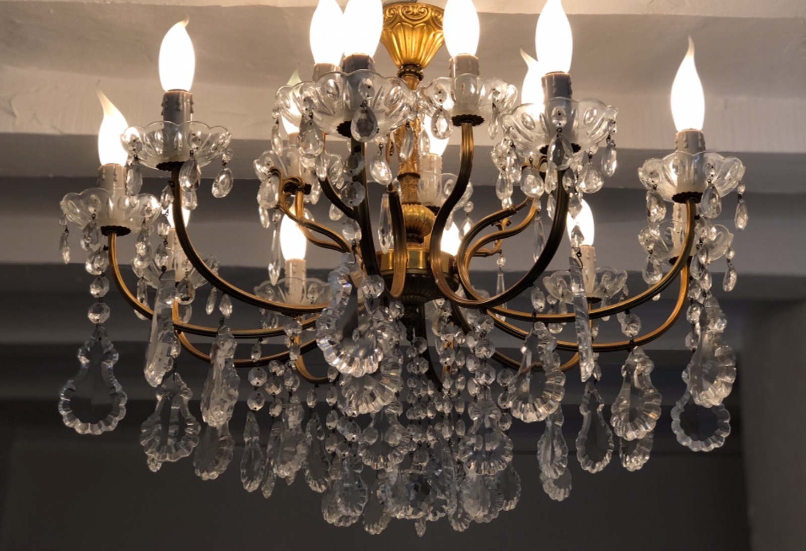 Large French Gilt Bronze & Crystal Chandelier 15 Branch Ceiling Light