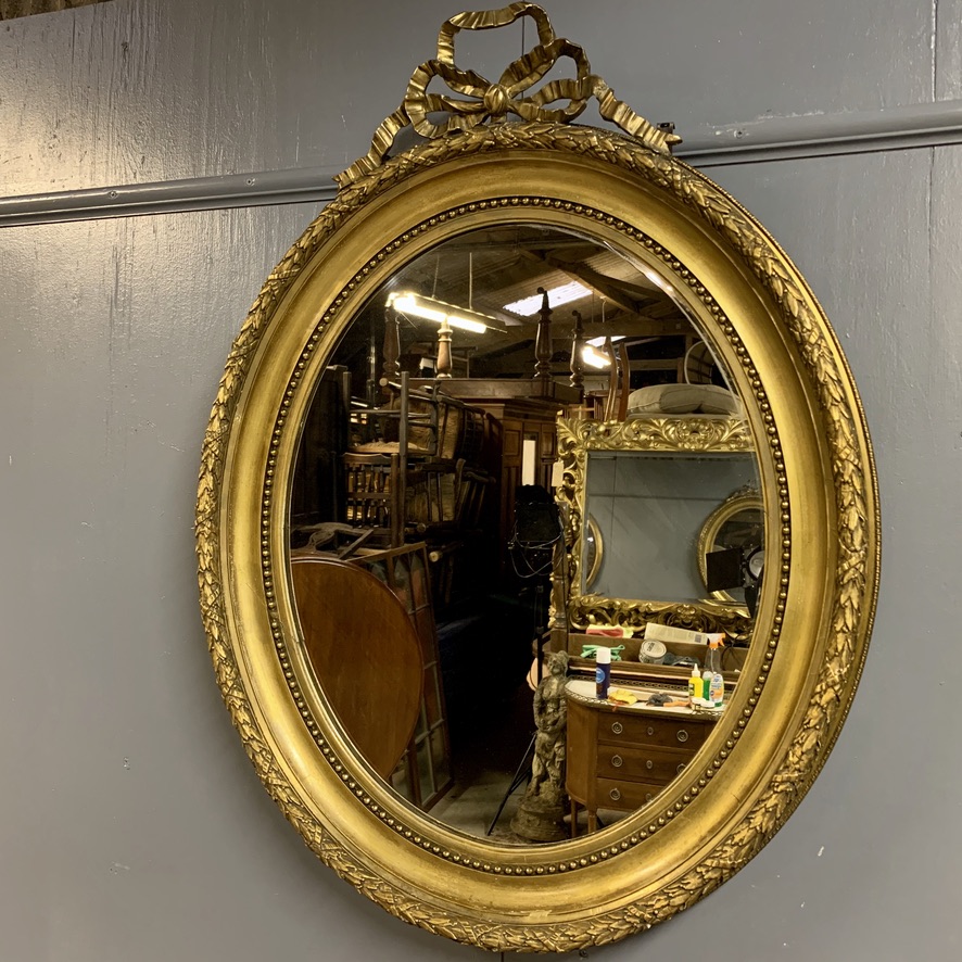 Large French Gilt Oval Mirror with Bevelled Glass (1 of 7)