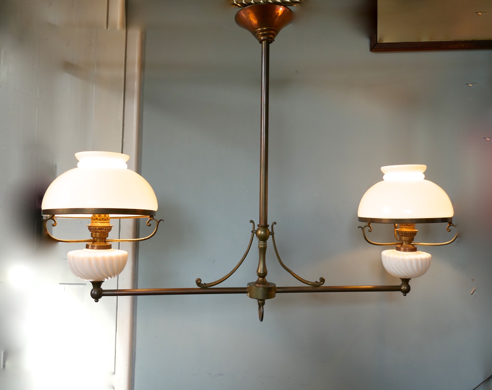 Large French Hanging Dining Table Double Oil Lamp c.1920