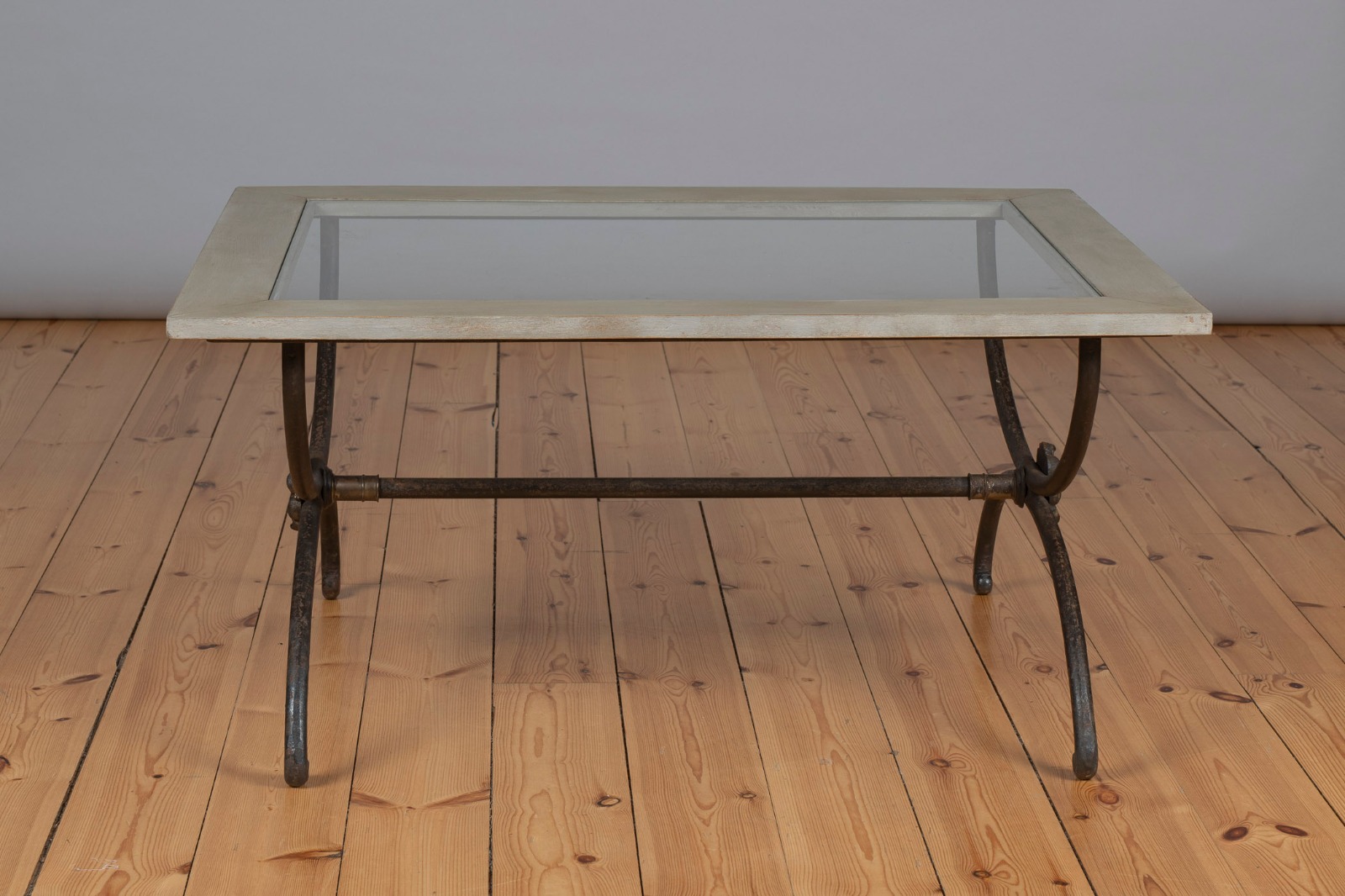 Large French Iron & Glass Coffee Table