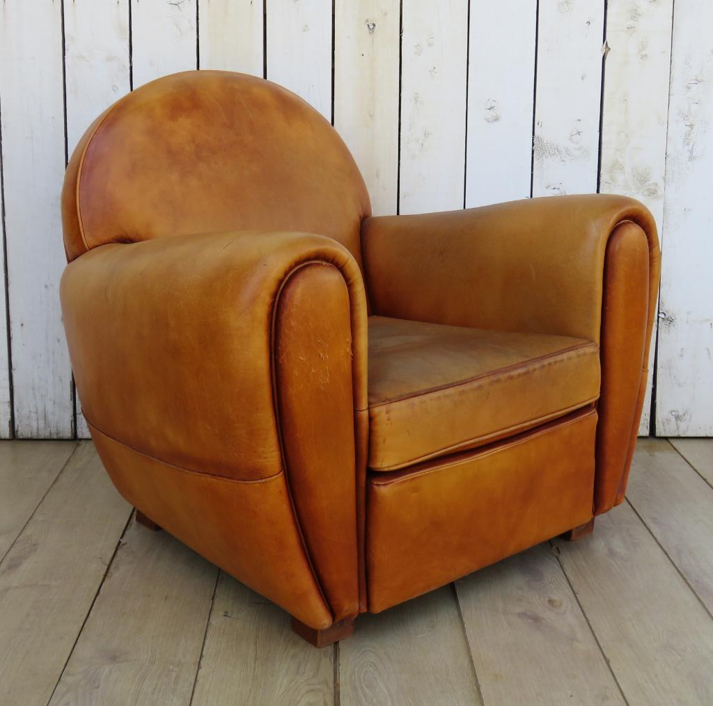 Large French Leather Club Chair