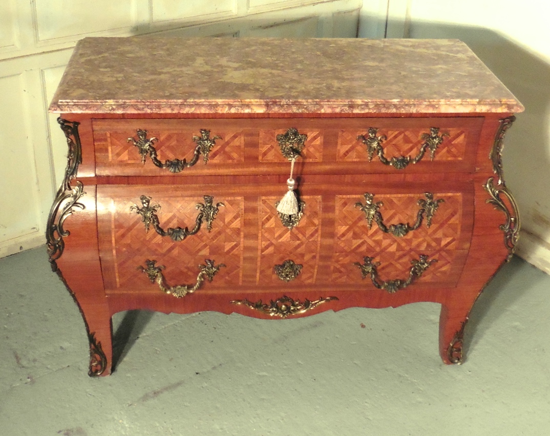 Large French Louis XV Style Bombe Commode, Chest of Drawers
