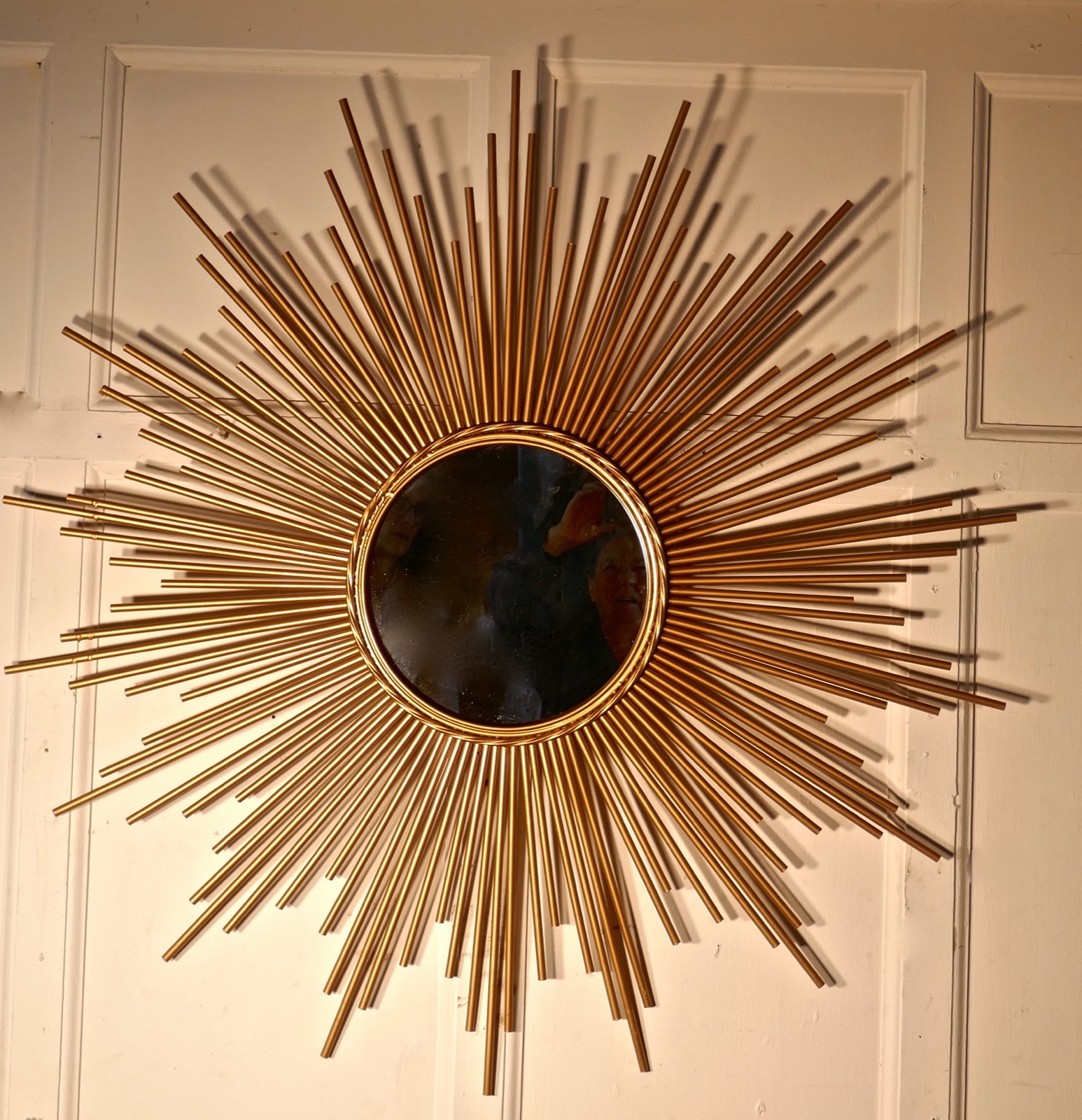 Large French Mid Century Sunburst-Starburst Brass Mirror
