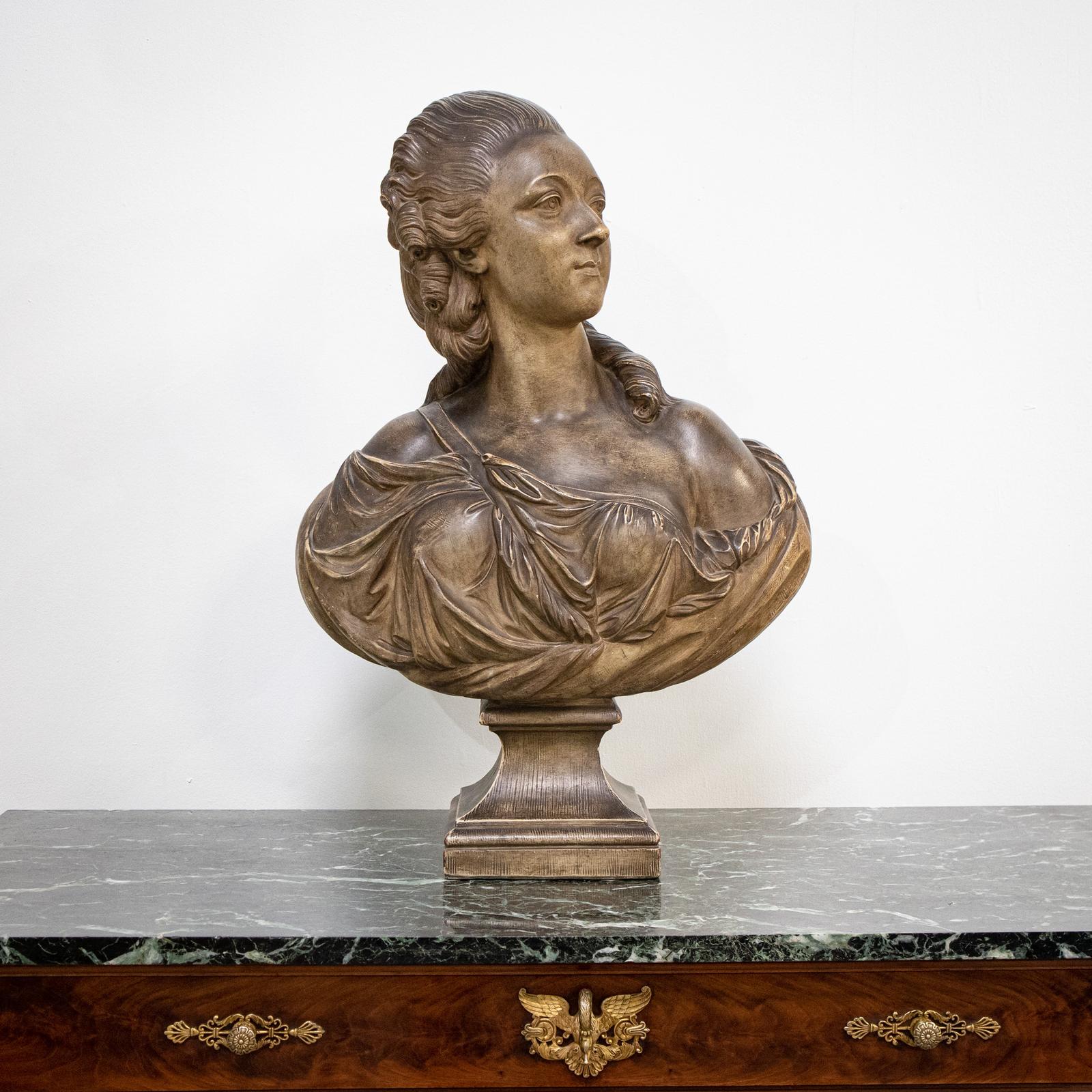 Large French Painted Terracotta Bust of Madame Du Barry After Augustin Pajou